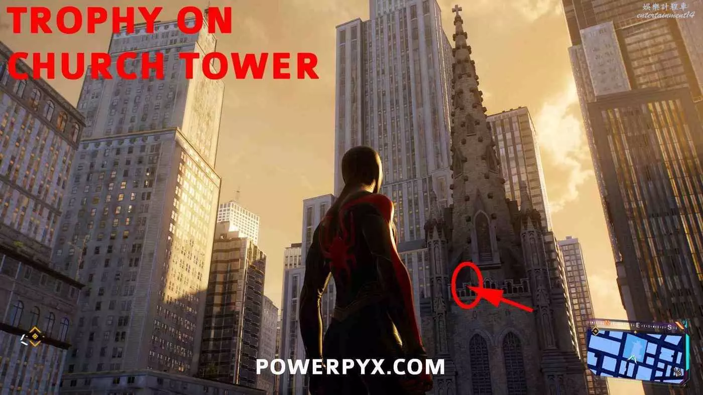 科研獎盃可以在《蜘蛛俠邁爾斯》結局過場動畫邁爾斯放置的地方找到,就在金融區教堂塔樓後方。前往金融區南邊的教堂,爬上教堂他的後方,有個藍色立方體,按△鍵拾取即可。注意此獎盃只能在扮演邁爾斯時解鎖,扮演彼得派克時無法完成(不會出現按鍵提示)。