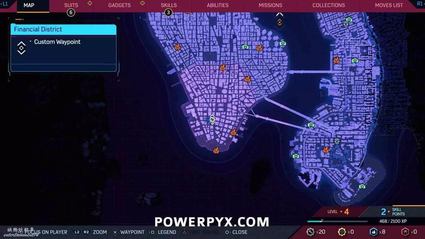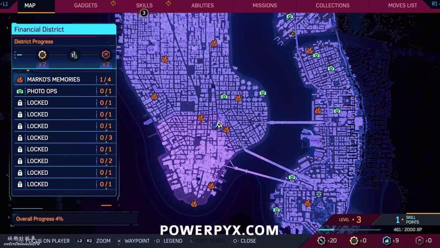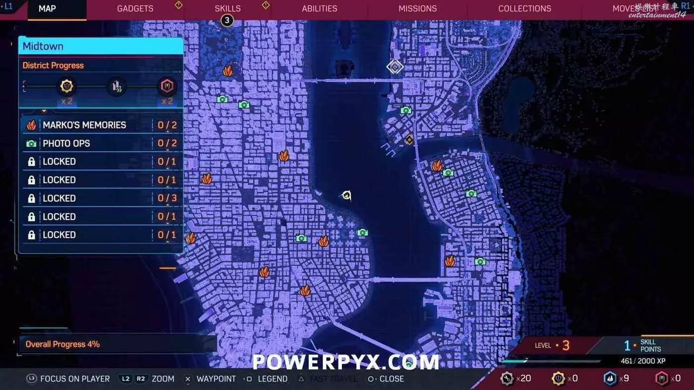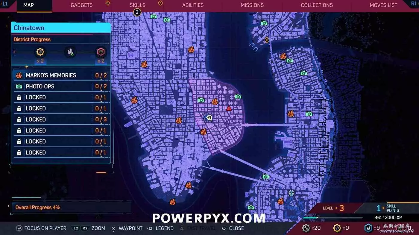 本作中總共有23個拍照點,第一個會在主線任務3讓我看看紐約期間自動解鎖。然後其他拍照點可以在任意時間點以彼得派克或邁爾斯來完成,在清除地圖迷霧後會在地圖上顯示位置標記。拍照需要前往指定地點,然後找到指定的景物來拍攝即可。大多數都是拍攝該區域的著名任務、景物或環境的照片,所有的拍照點都不用擔心錯過,通關主線後依然可以返回自由探索並收集。