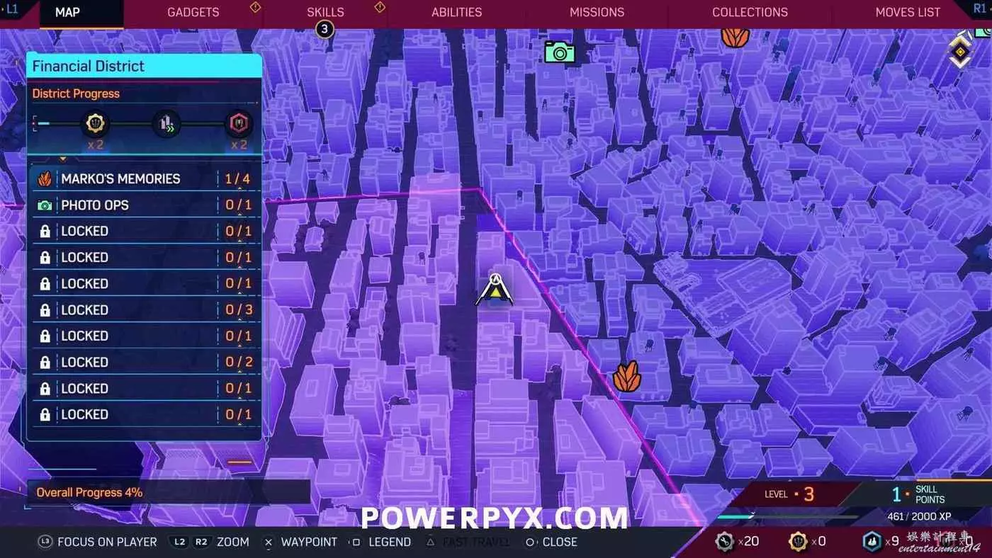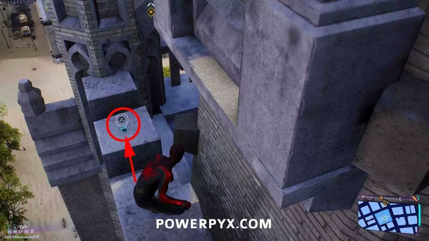 然後前往金融區的東北角,尋找屋頂上的信號發射塔,可以按L2+R2到達塔頂。