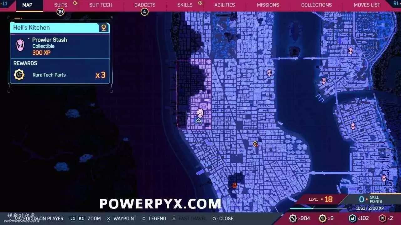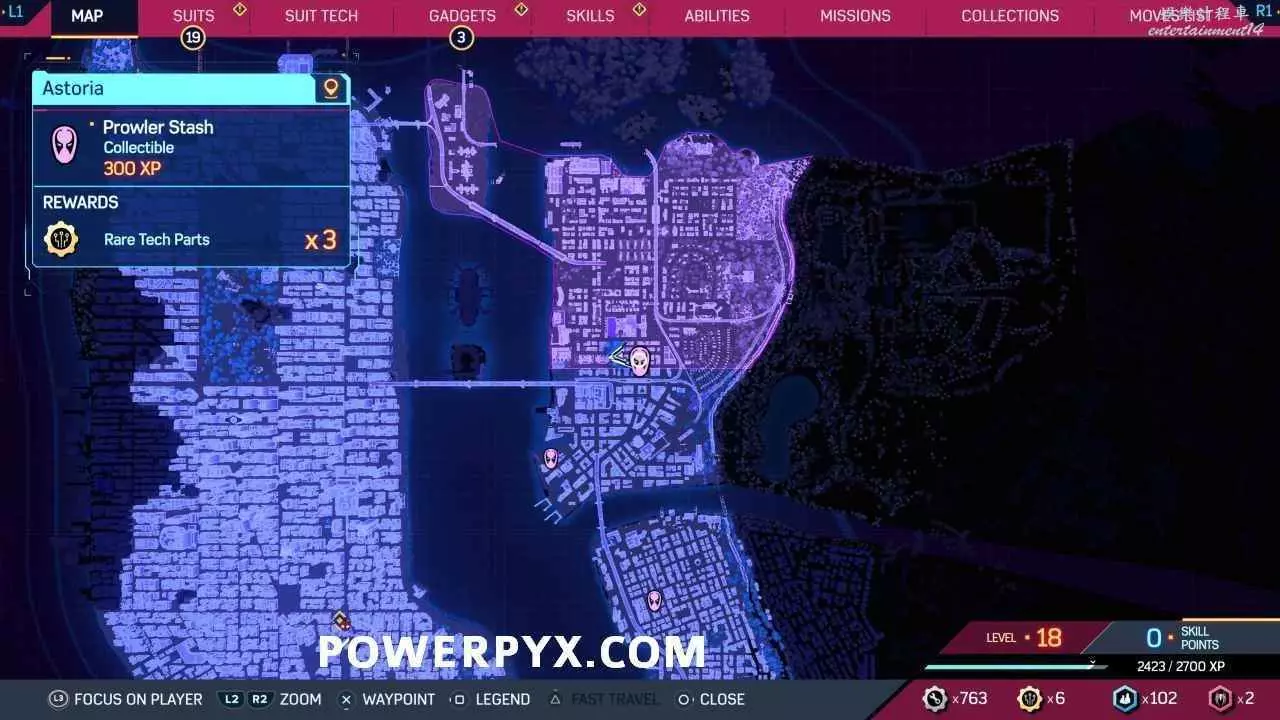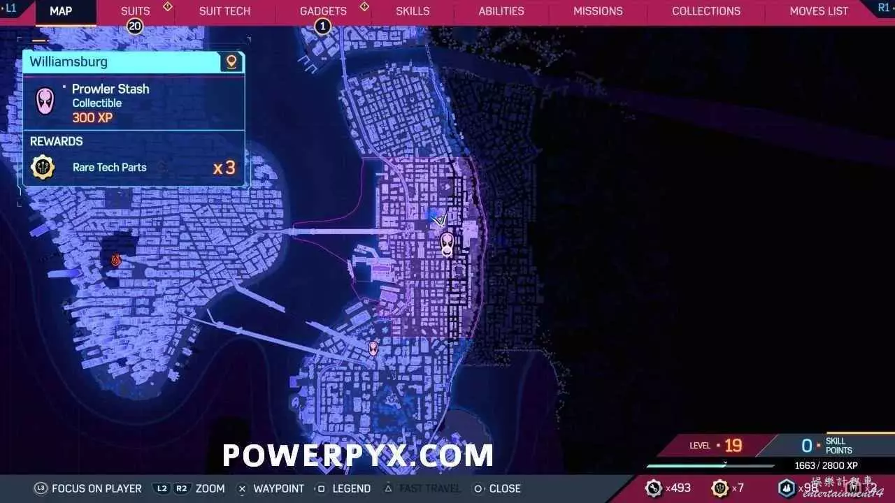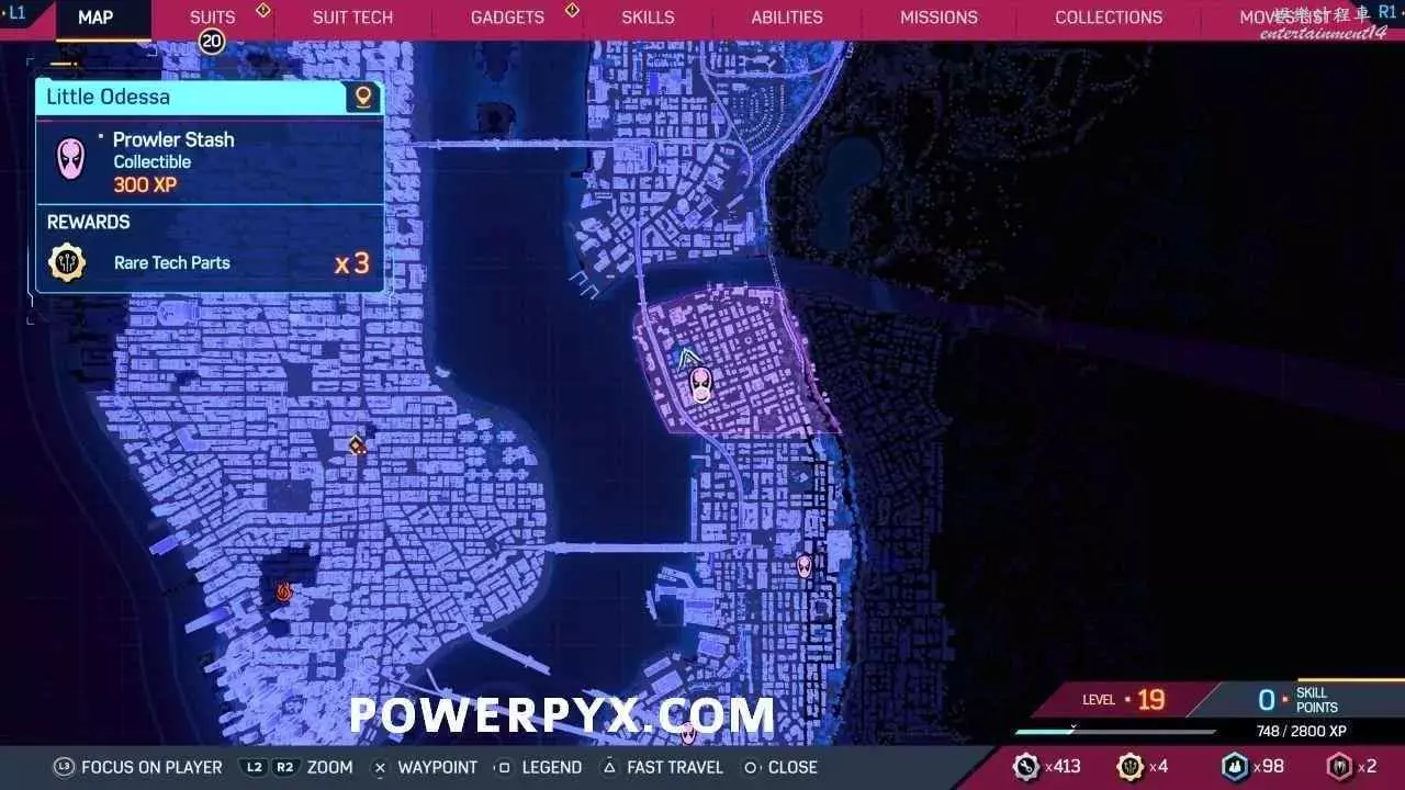 第一個徘徊者的裝備箱會在主線任務6【補償】期間出現,之後即可解鎖所有的儲物箱,在清除地圖迷霧後即可顯示位置標記,前往並收集即可。最後一個儲物箱位置會在收集其他所有儲物箱之後出現。可以按L2掃描建築物的特定部分方便找到藏匿點的入口(具體可以參考本文下方截圖中的地圖),所有的裝備儲物箱都可以在通關主線後返回繼續收集,不用擔心漏掉。