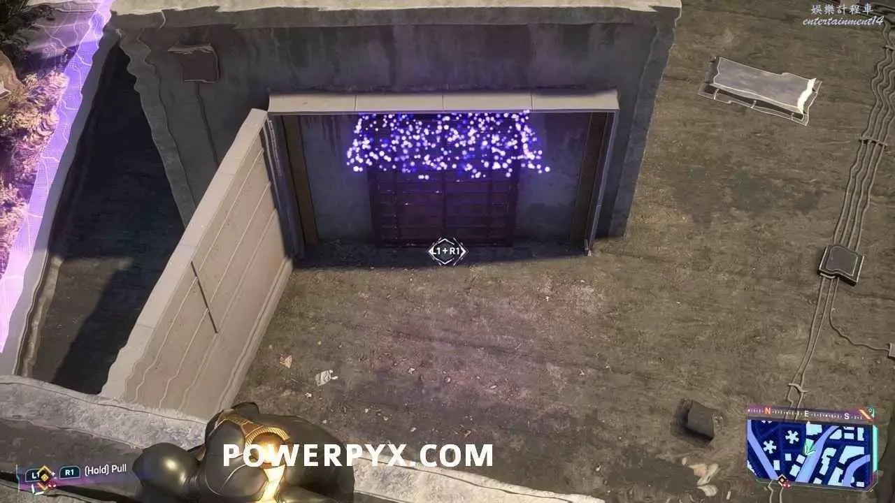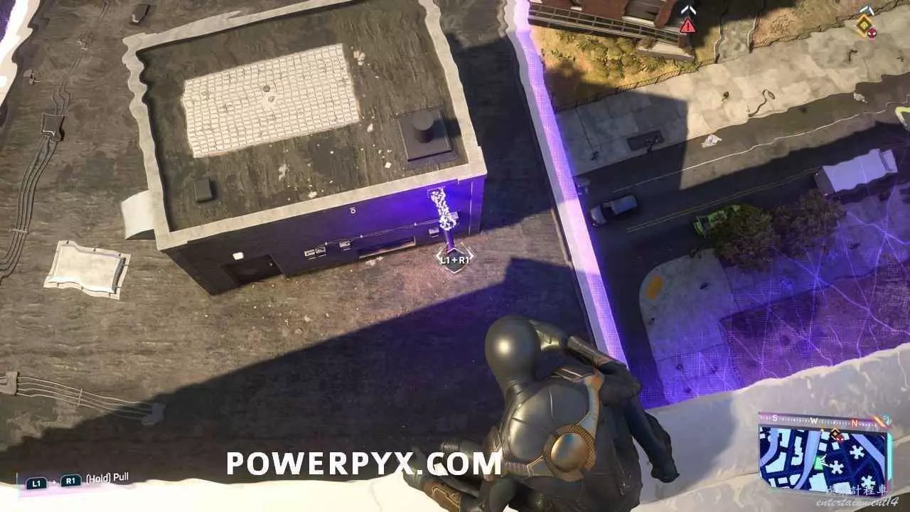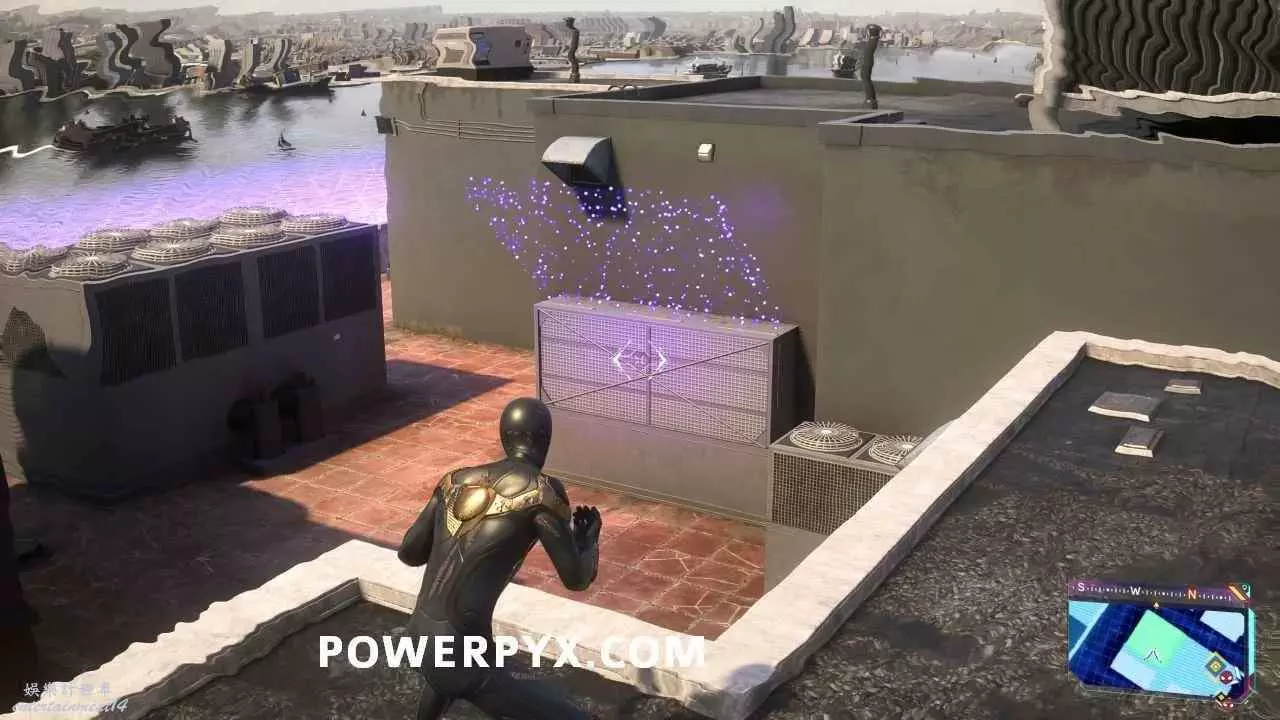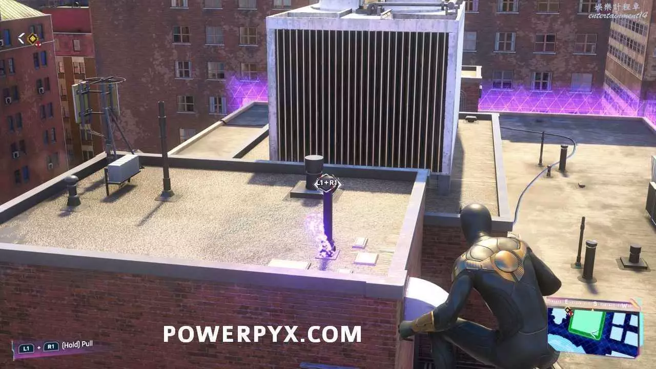 掃描屋頂南邊掛著的拉杆,然後按L1+R1拉動拉杆,獲得一個位置標記,前往標記位置並與背包互動,進入邁爾斯的公寓。