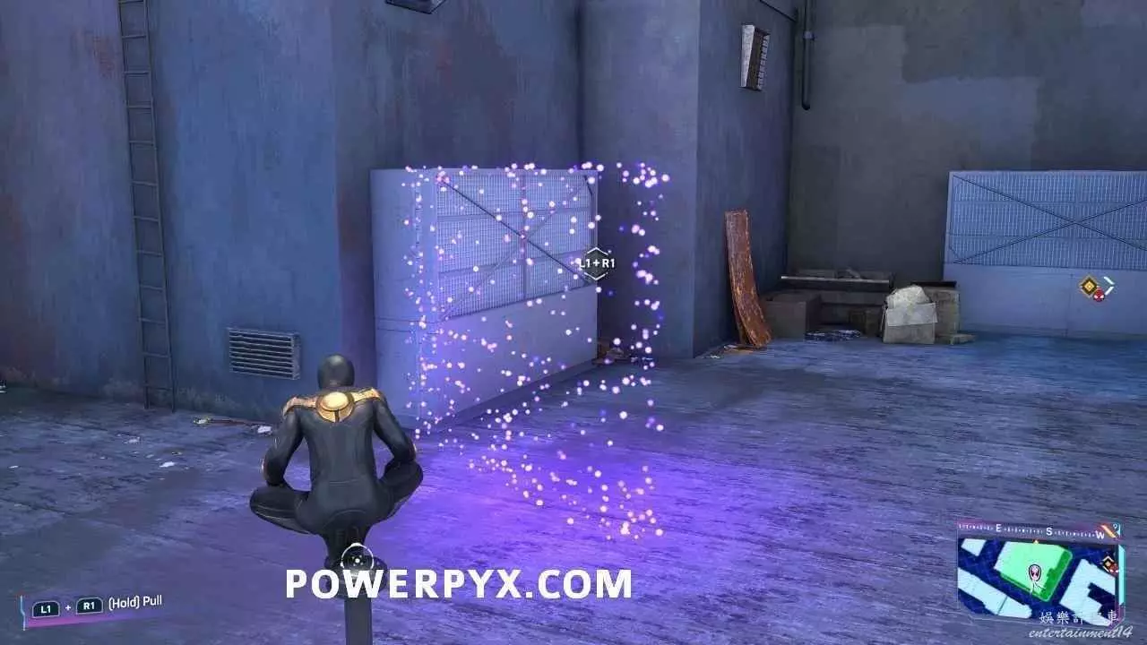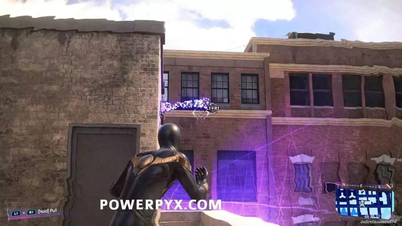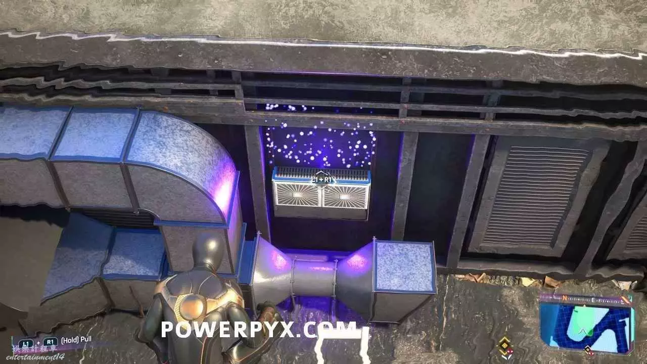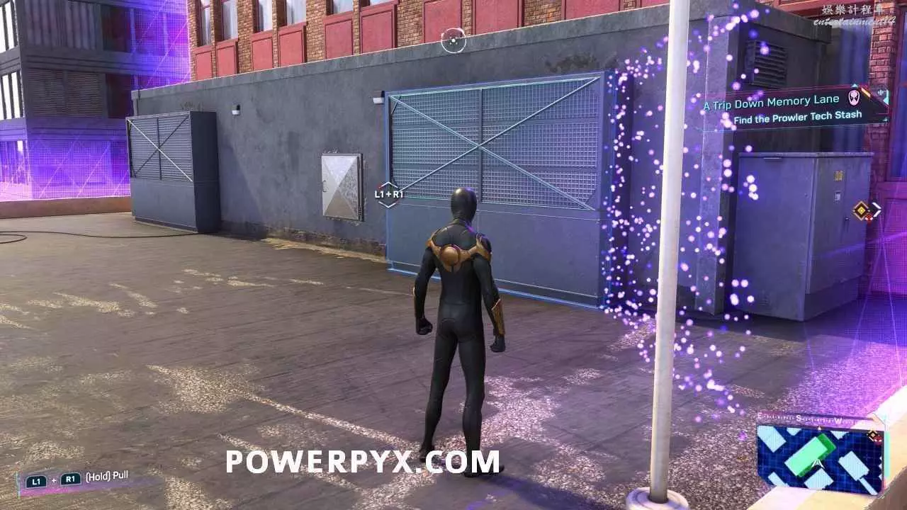 掃描屋頂南邊掛著的拉杆,然後按L1+R1拉動拉杆,獲得一個位置標記,前往標記位置並與背包互動,進入邁爾斯的公寓。