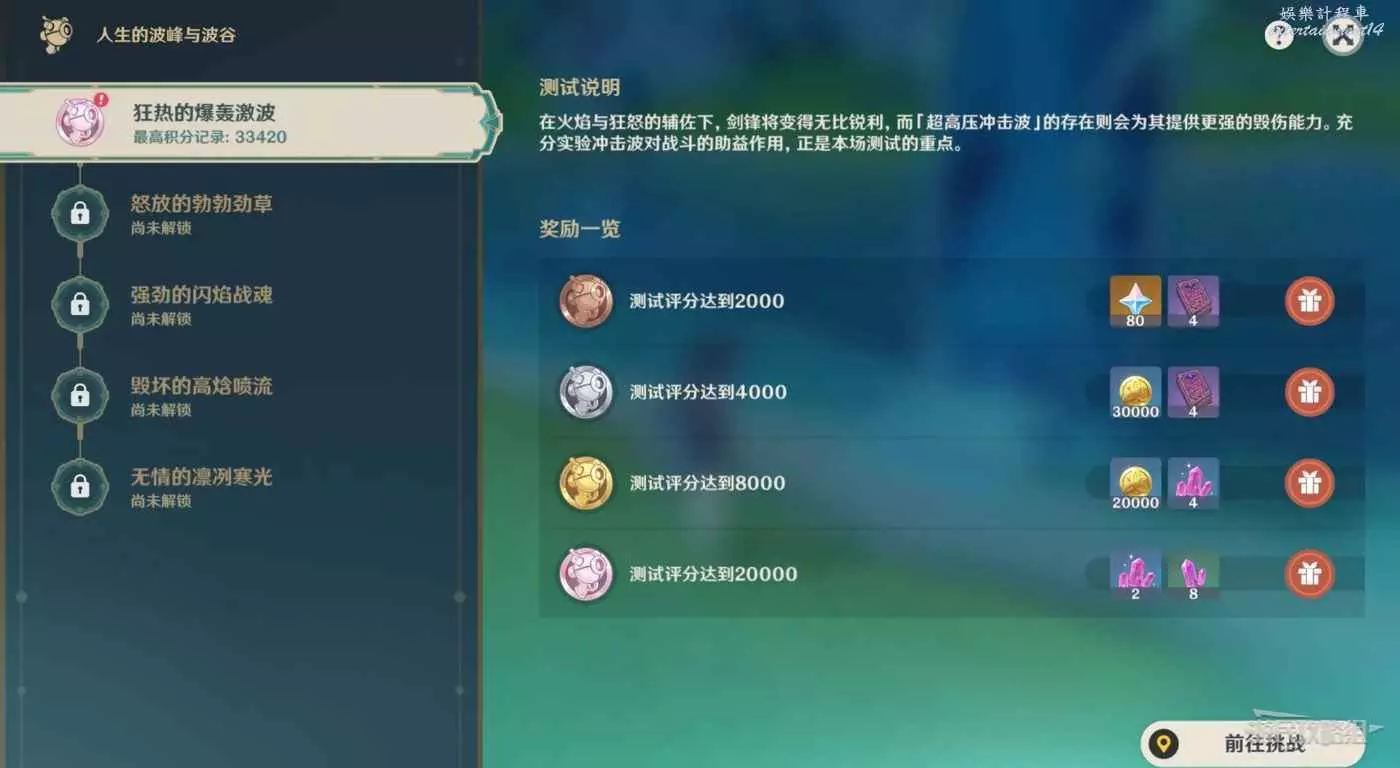第一天關卡積分倍率選擇2倍。三隊均只使用試用角色的話不建議考慮拿滿獎勵(指達到20000分),拿到8000分三檔獎勵即可。