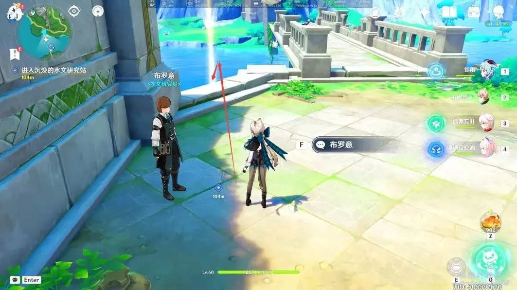 取回水文研究資料後,我們直接出來,遊上去與布羅意對話即可