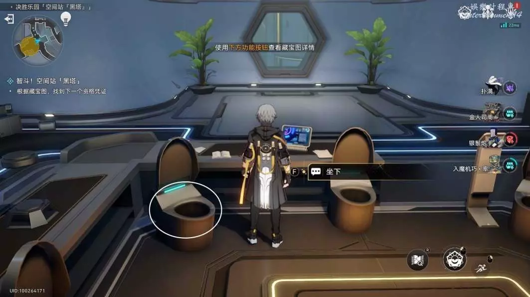與地圖的東北方向馬桶互動,坐下