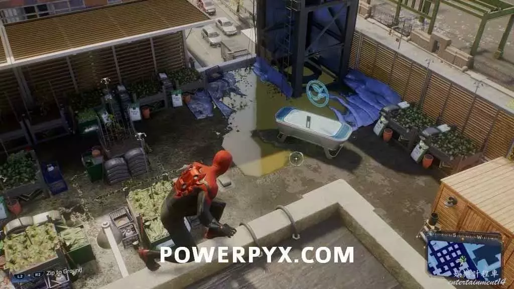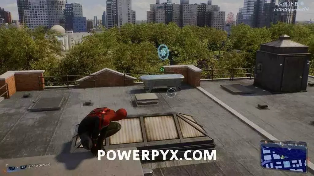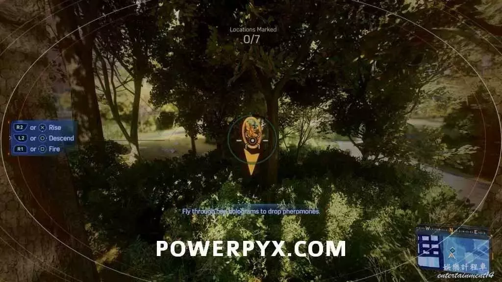 此實驗需要玩家使用蛛網翼飛到空中,在風口部署無人機,可以使用R3掃描並追蹤路線。
