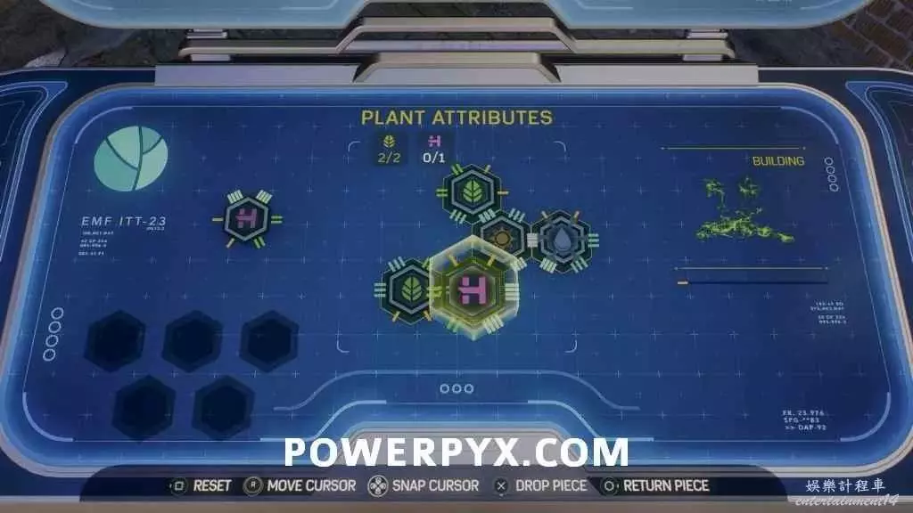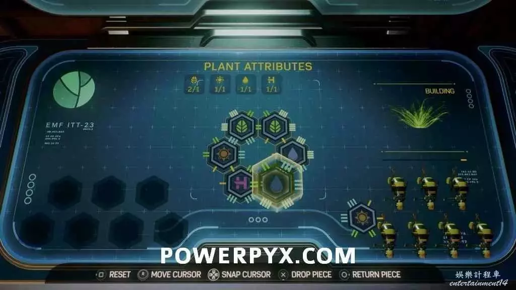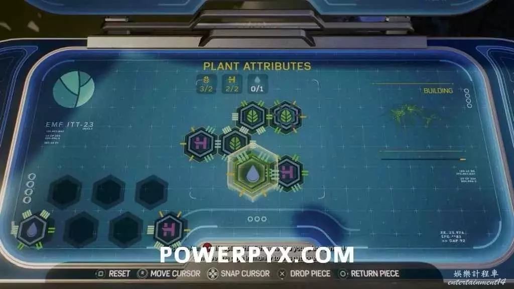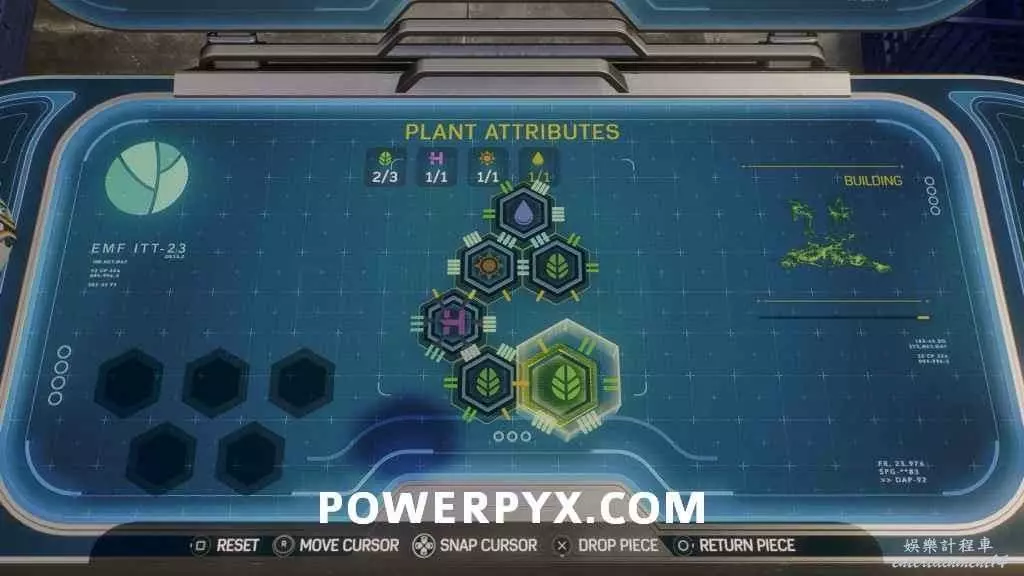 清光敵人後,拾取植物帶回實驗台上,參考下圖解法解開拼接謎題。注意返回的路上可能會遇到一些敵人,沿途將他們清理掉再返回完成拼接謎題。