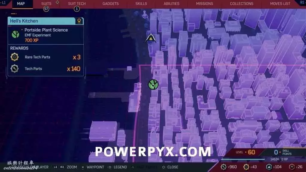 EMF實驗需要玩家前往指定地點並完成小遊戲。第一個EMF實驗在完成主線任務7治癒世界後即可在地圖上顯示位置標記,在扮演彼得派克時即可前往並完成收集。最後一個地點會在完成其他所有地點(8個)並通關主線後解鎖。EMF實驗會要求玩家前往指定地點,然後完成一個小遊戲,不用擔心漏掉所有地點,在通關後依然可以在開放世界自由探索並完成。