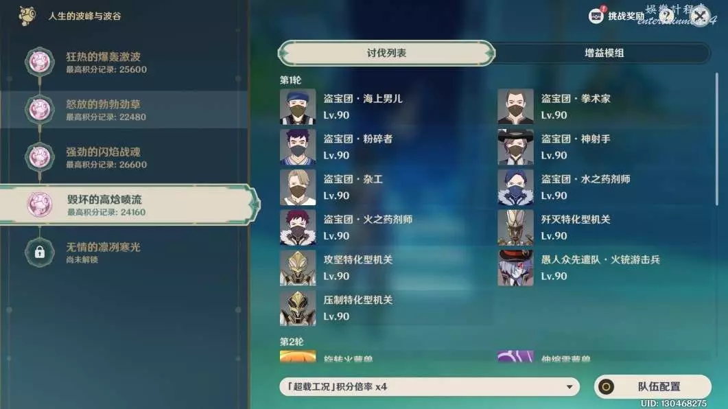 群怪比前面3關都多,建議帶群傷隊伍,或者聚怪角色(溫蒂、萬葉、砂糖),沒有破盾方面和怪物元素免疫的環境,就第2輪火抗高一點,第2輪儘量不要帶火傷隊伍就行。