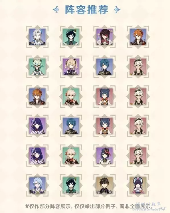 根據增益效果較為推薦水傷隊伍、雷傷隊伍、攜帶治療位置的隊伍等,推薦陣容可參考下圖。