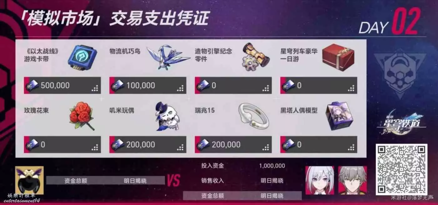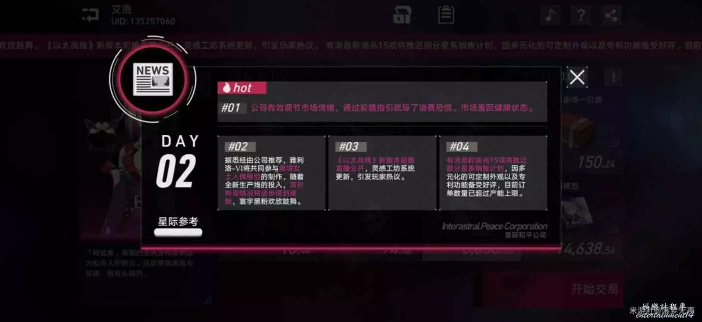 從第一天的情報來看,黑塔手辦、嘰米玩偶、瑞兆15這三個商品的上漲情況是可以預料到的。唯一的變數在於情報最頂上的一條,說消費者出現了一些對消費主義的質疑,但是這一點變數也在Day2被消除了,市場重回正軌。