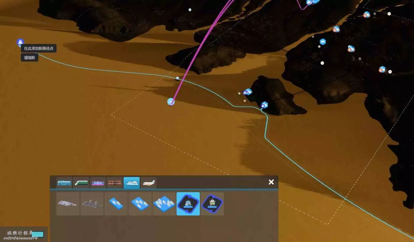 航線畫完之後就可以正常運轉了,如下圖已經有客船靠岸。