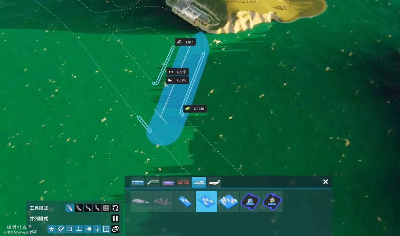 根據需求決定放置自己想要的航道寬度,然後接入已經有的航道。