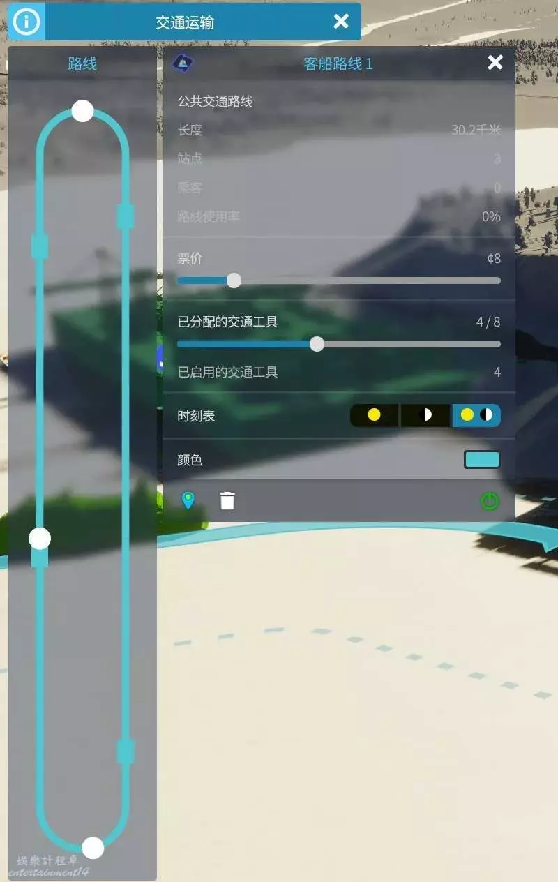 和其他公共交通一樣我們也可以設置船的數量以及船票價格。