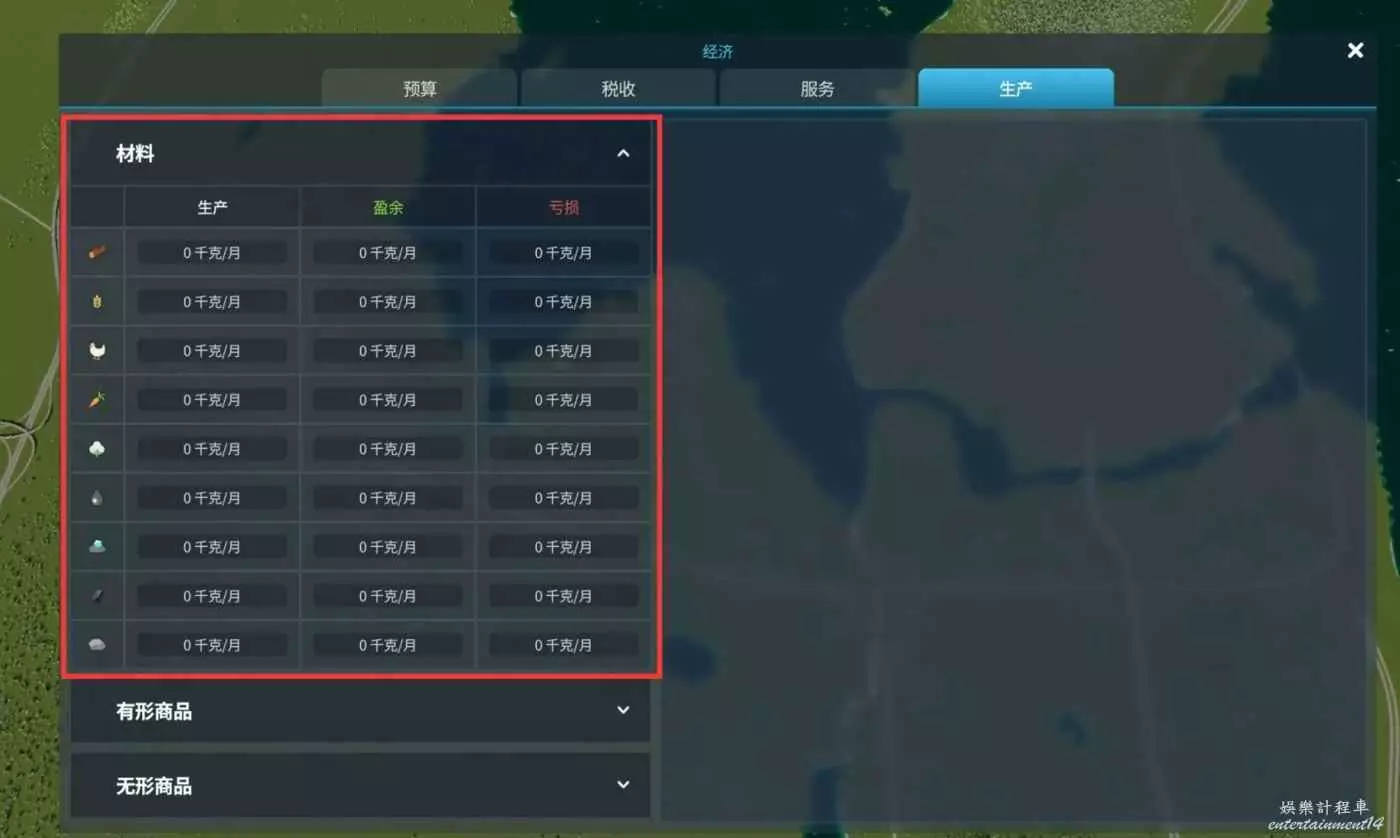 遊戲介面的左上角的資訊視圖中找到自然資源按鈕,點擊後如下圖,我們可以儘快解鎖左側的地塊,建立養殖或者種植業,降低進口的開銷,也可以解鎖上方的森林區,獲得大量的木材,以及右下礦脈能夠產出煤炭寶石資源。