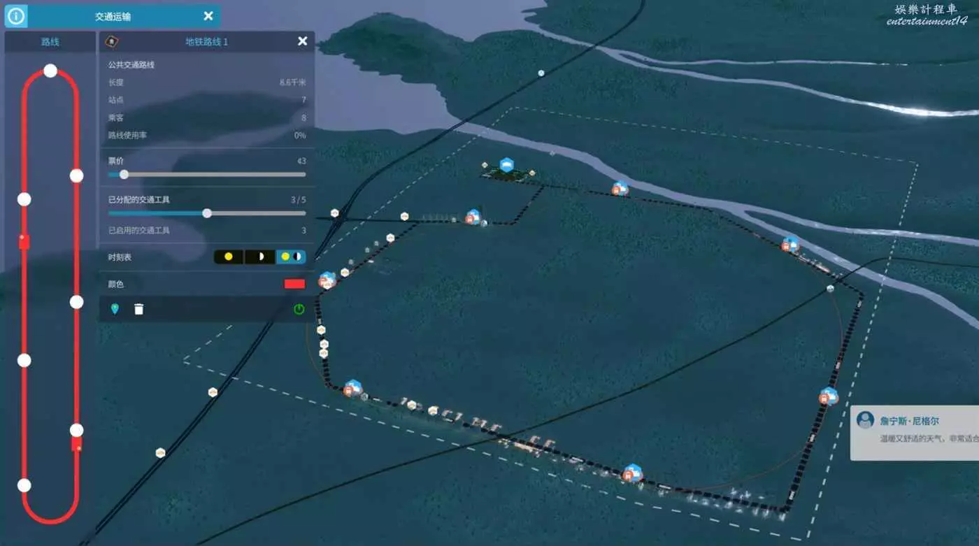 在左上角各項資料中我們選擇公共交通裡的地鐵,能夠修改票價以及執行車輛總數,剛剛連接好地鐵站沒有乘客比較正常,過一小段時間過後就會有越來越多的人乘坐。