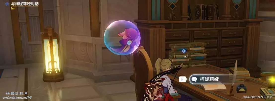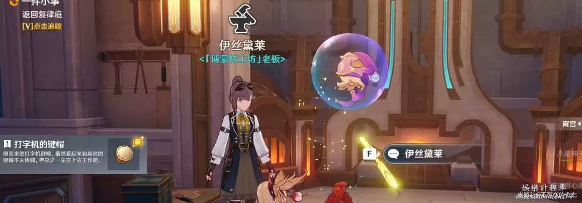 與伊絲黛萊對話,獲得任務道具“打字機的鍵帽”。