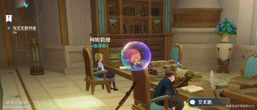 跟著任務指引,回到艾尤恩的辦公桌附近,與洛耶茨對話。