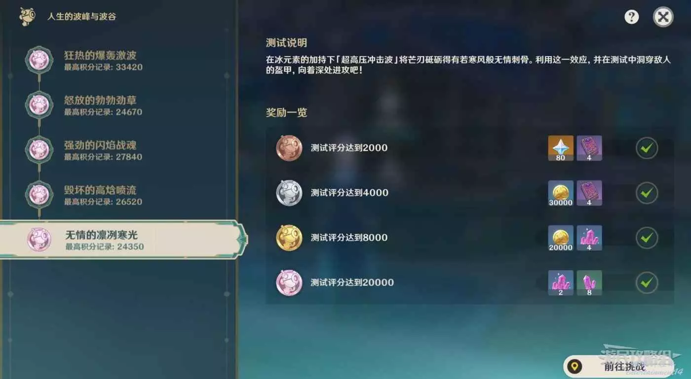 第一天關卡積分倍率選擇2倍。三隊均只使用試用角色的話不建議考慮拿滿獎勵(指達到20000分),拿到8000分三檔獎勵即可。