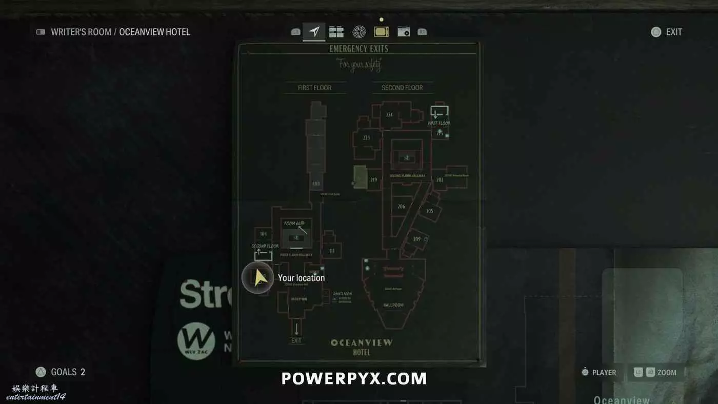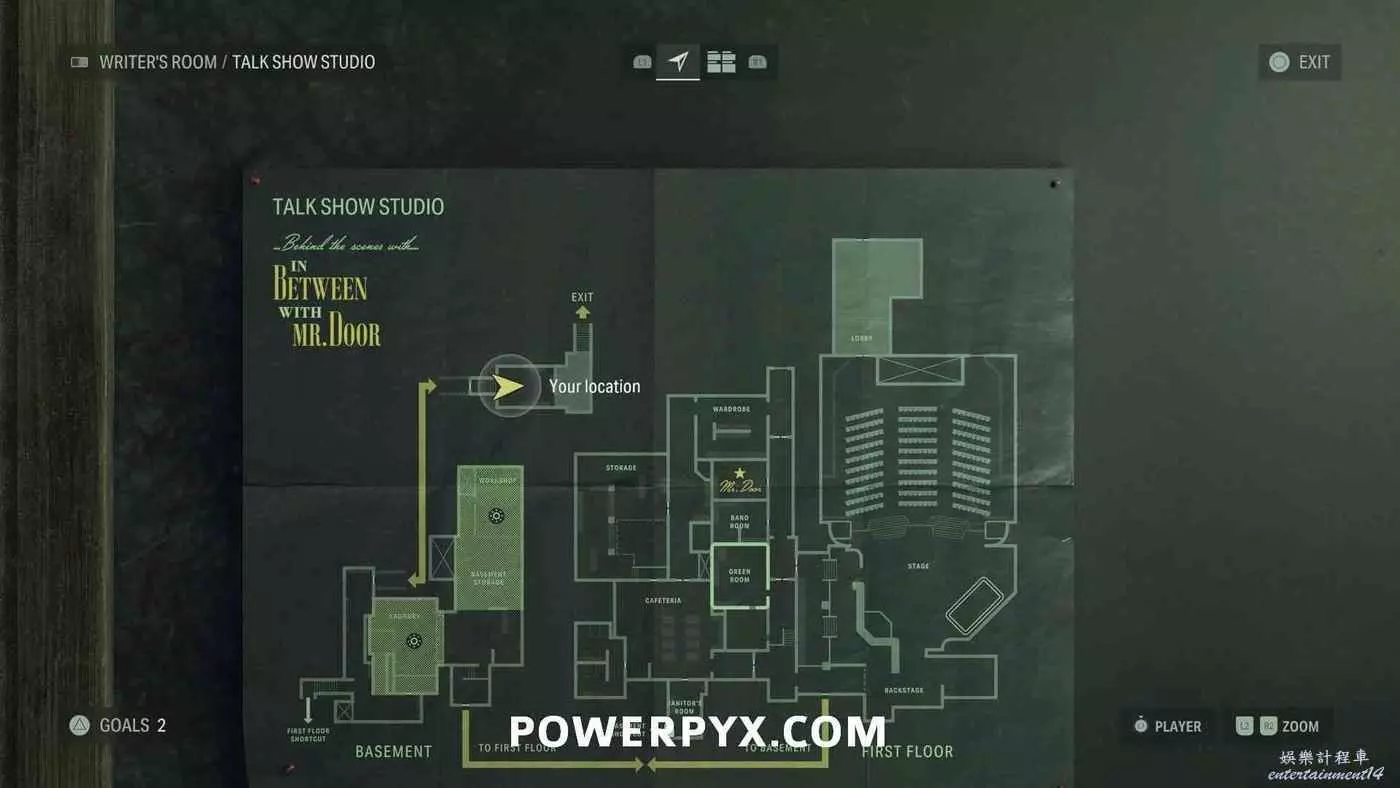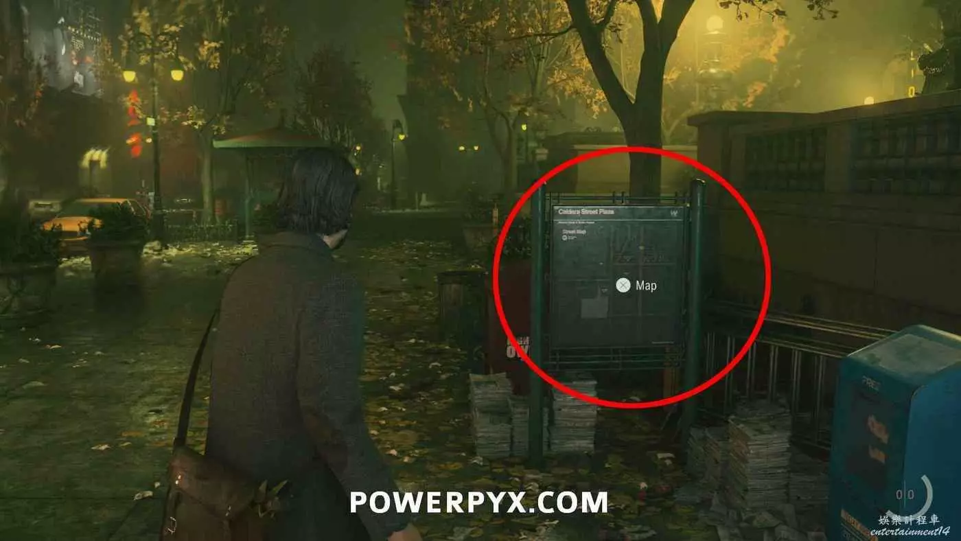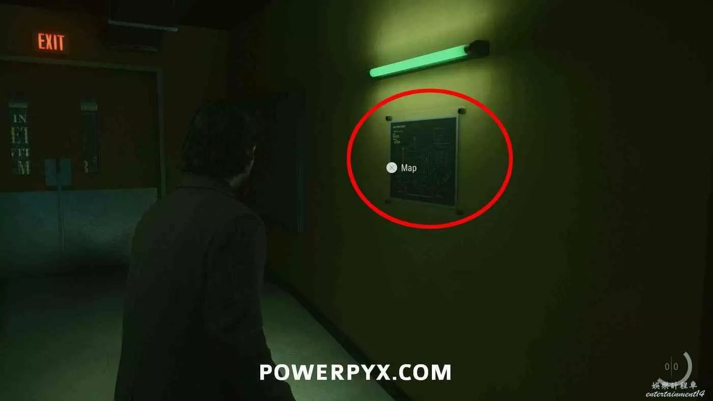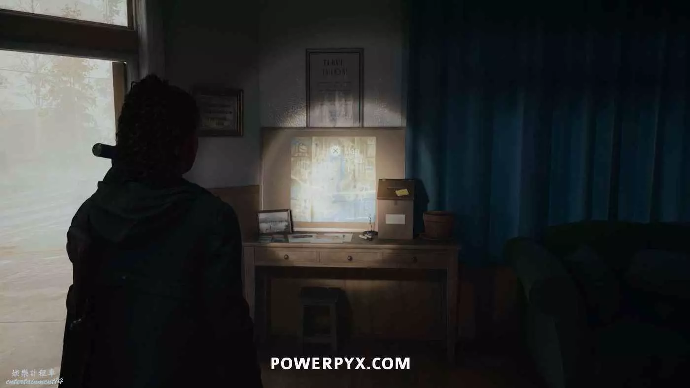 離開酒店後需要先穿過東南邊的洗車場才能到達詩人電影院,與售票處互動使用電影票開門,進入詩人電影院後,進入一層售貨亭後面一扇寫著【STAFF ONLY】的門,進入房間即可在牆上找到這張地圖。