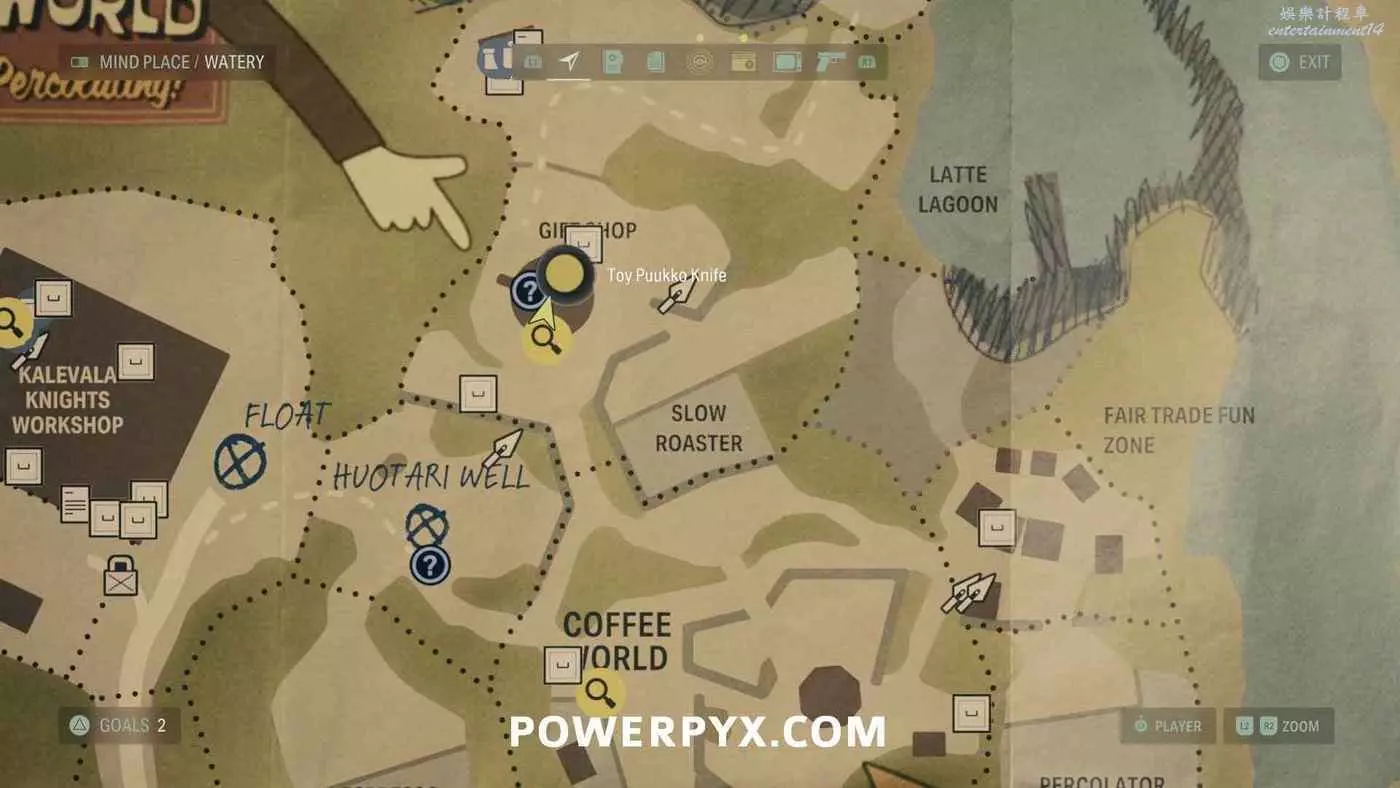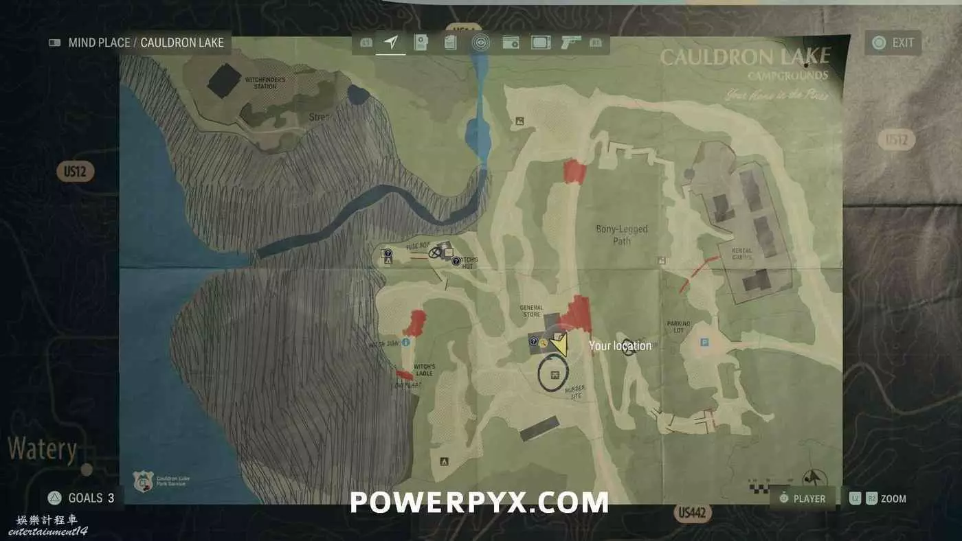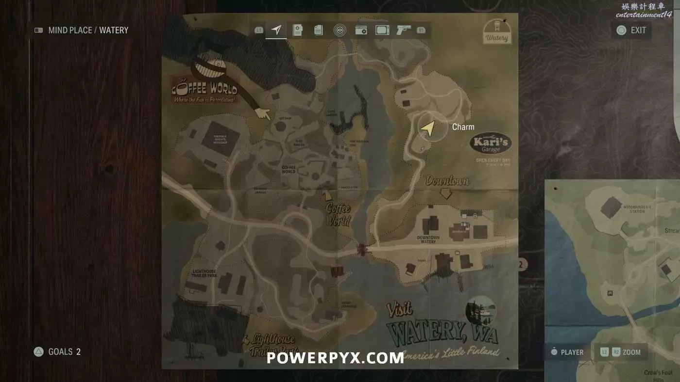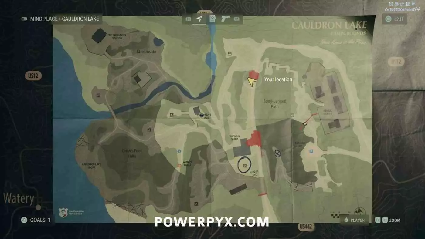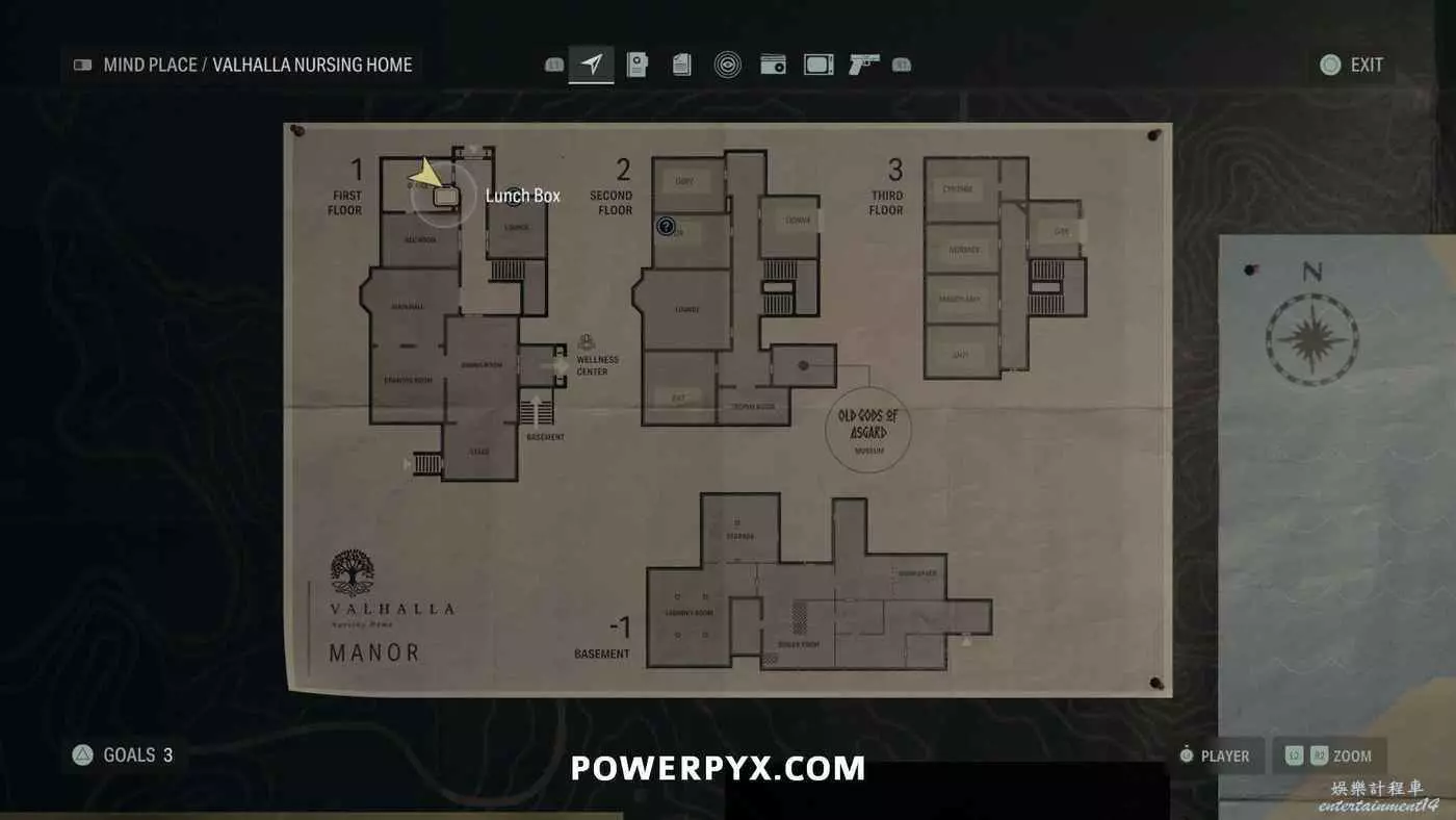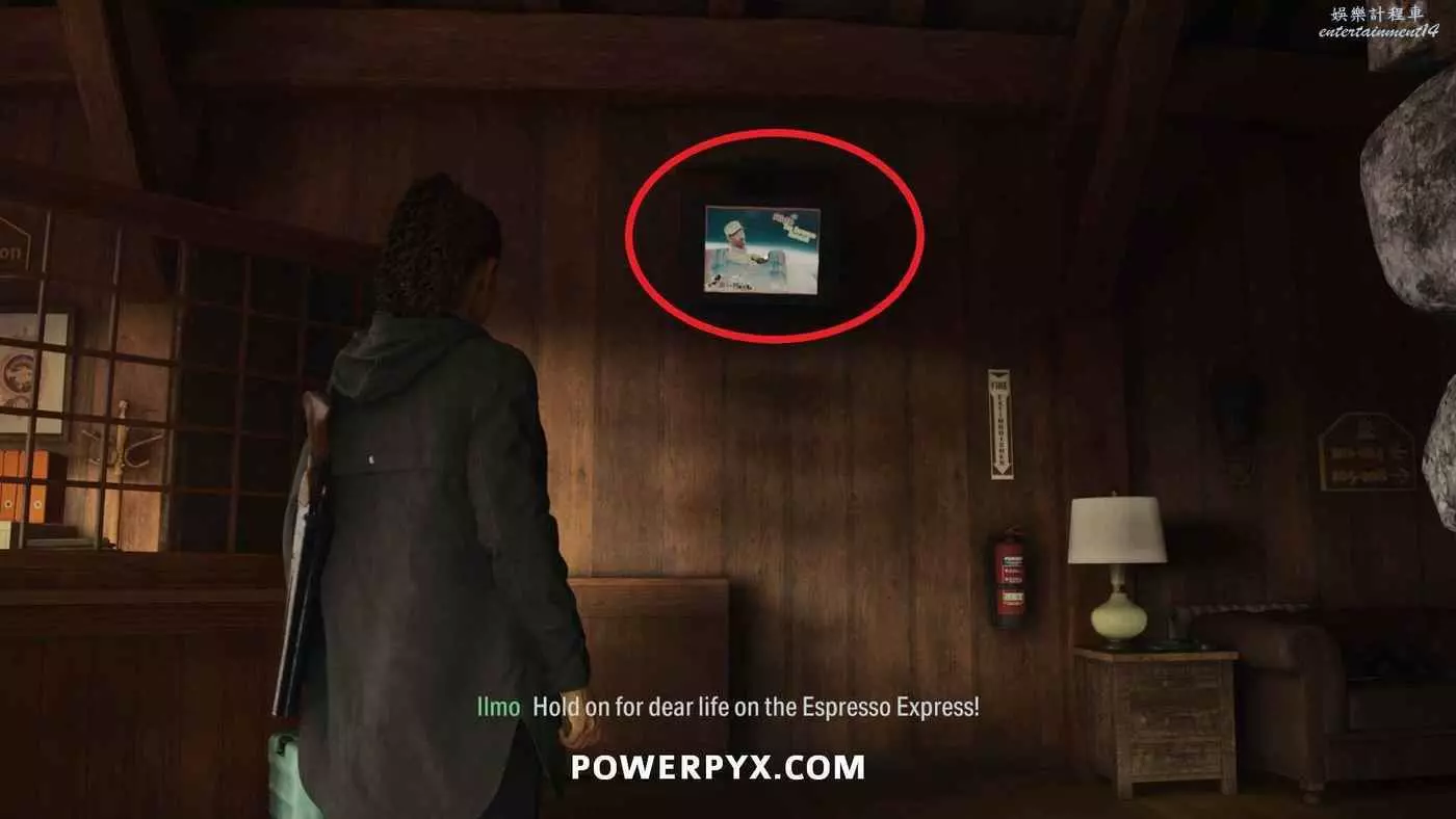 離開酒店後需要先穿過東南邊的洗車場才能到達詩人電影院,與售票處互動使用電影票開門,進入詩人電影院後,進入一層售貨亭後面一扇寫著【STAFF ONLY】的門,進入房間即可在牆上找到這張地圖。