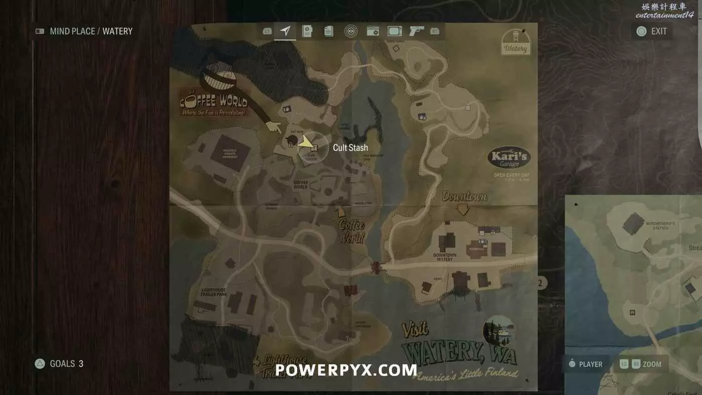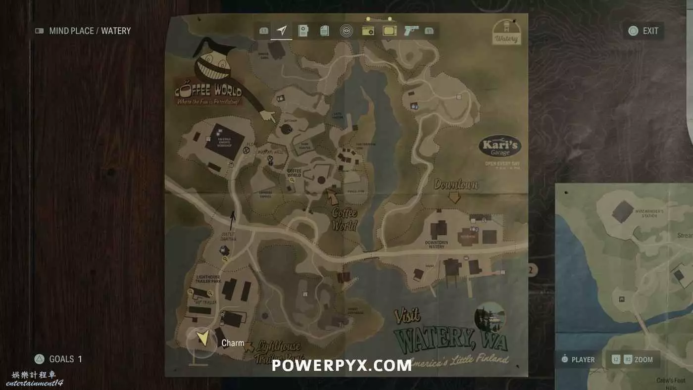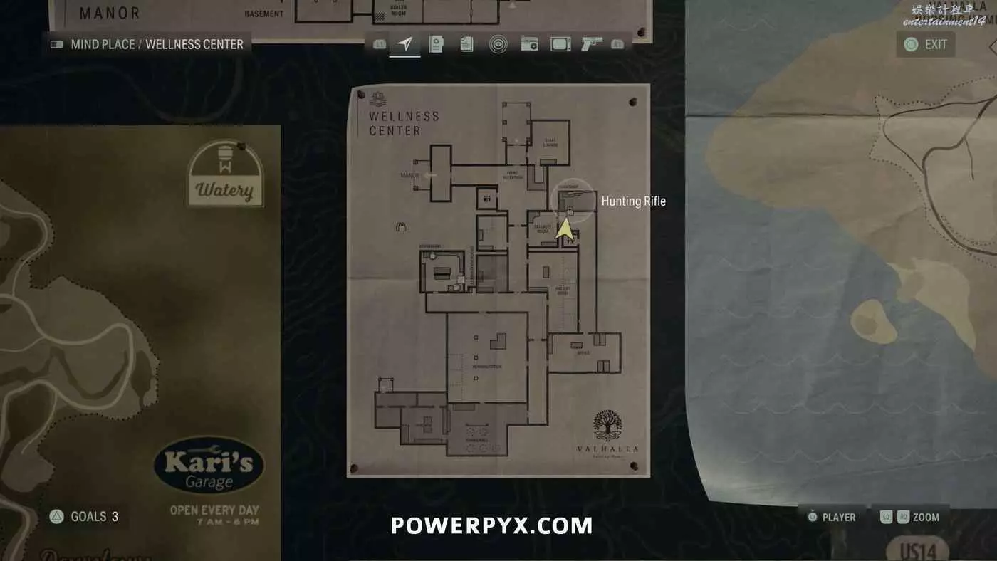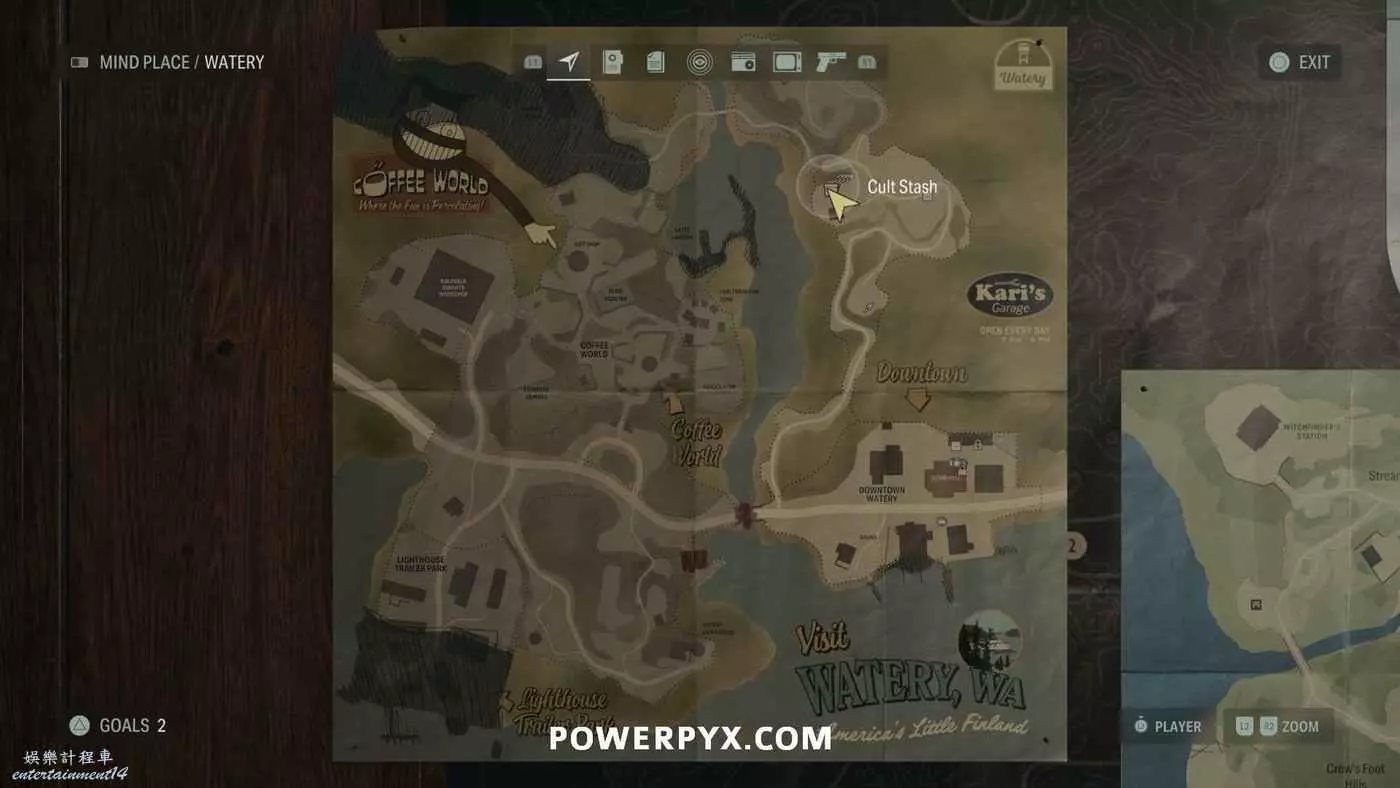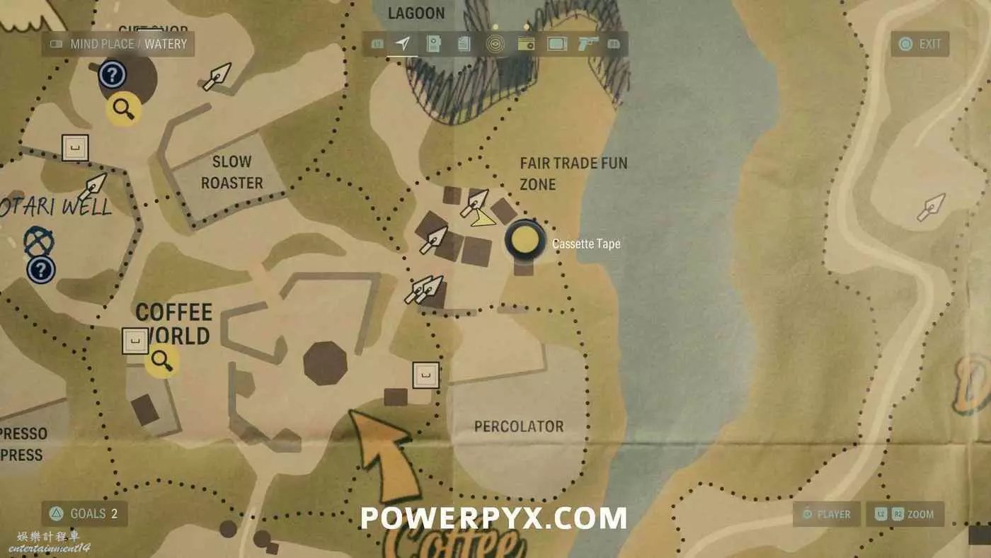 離開酒店後需要先穿過東南邊的洗車場才能到達詩人電影院,與售票處互動使用電影票開門,進入詩人電影院後,進入一層售貨亭後面一扇寫著【STAFF ONLY】的門,進入房間即可在牆上找到這張地圖。