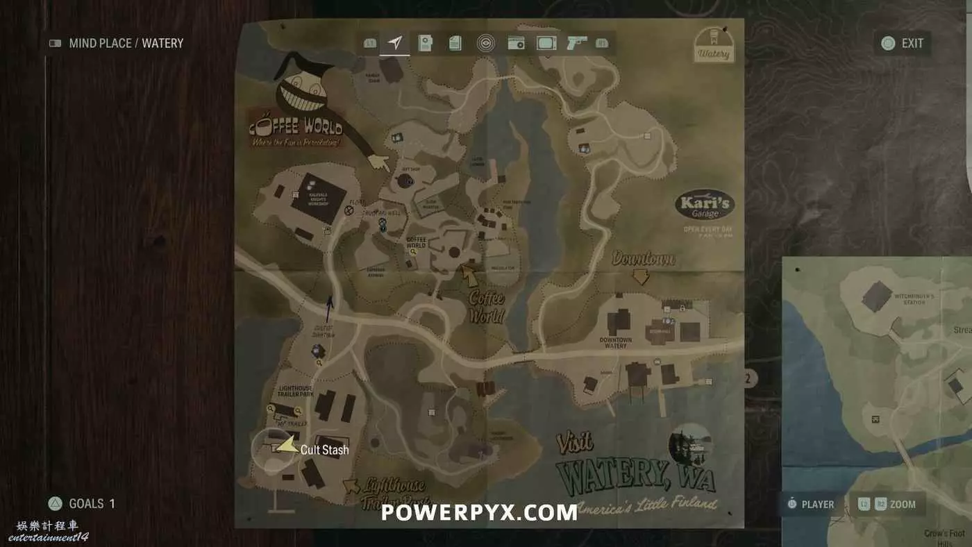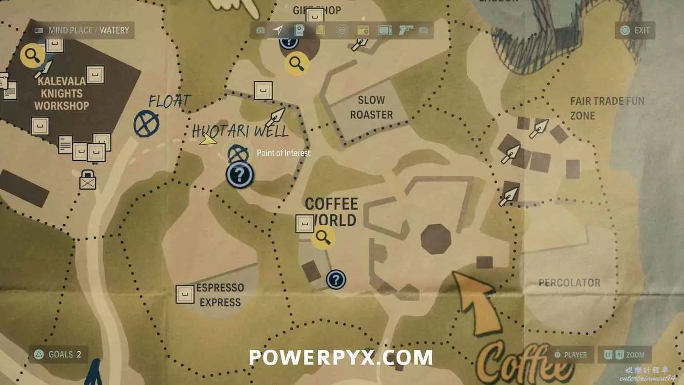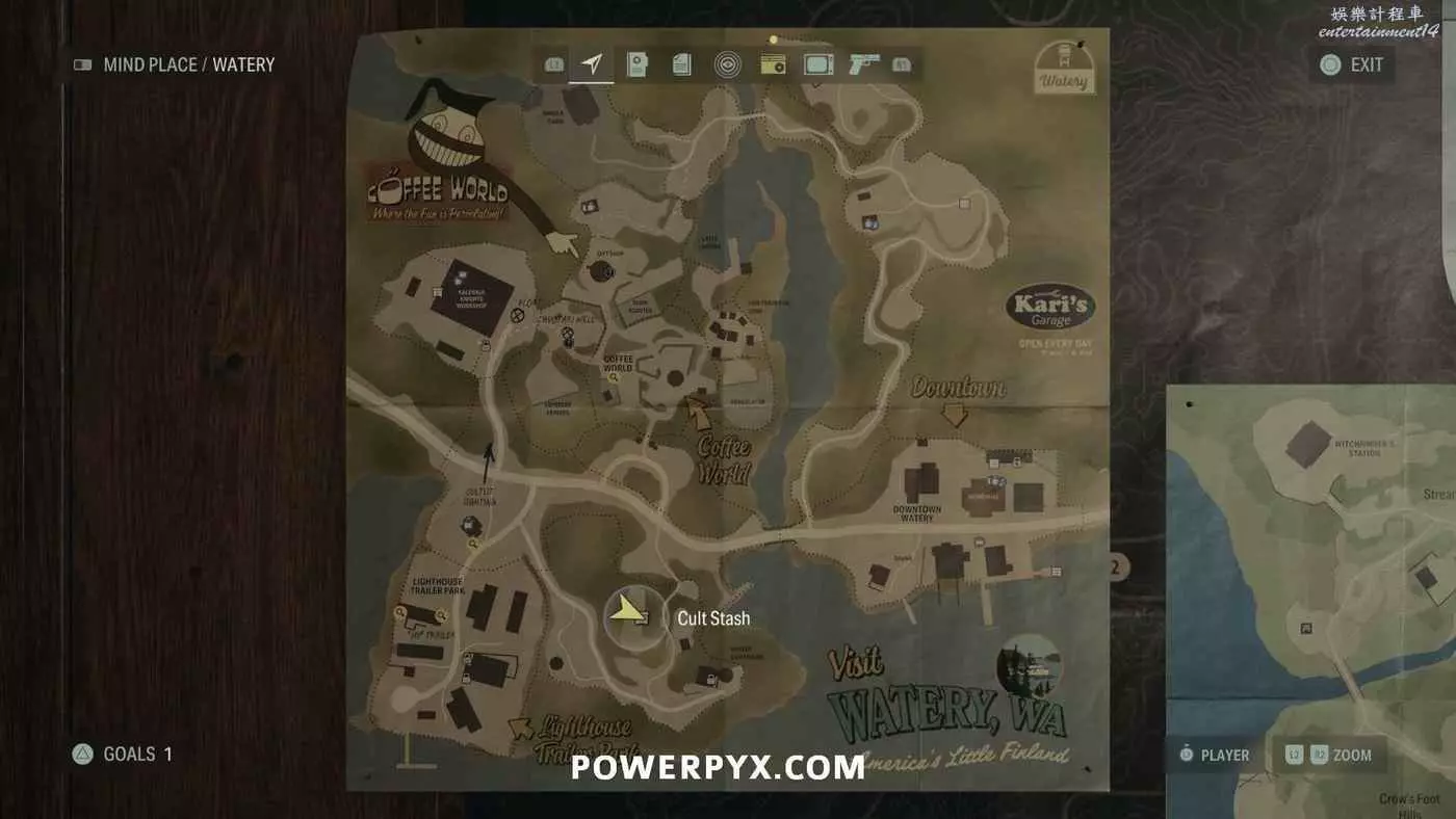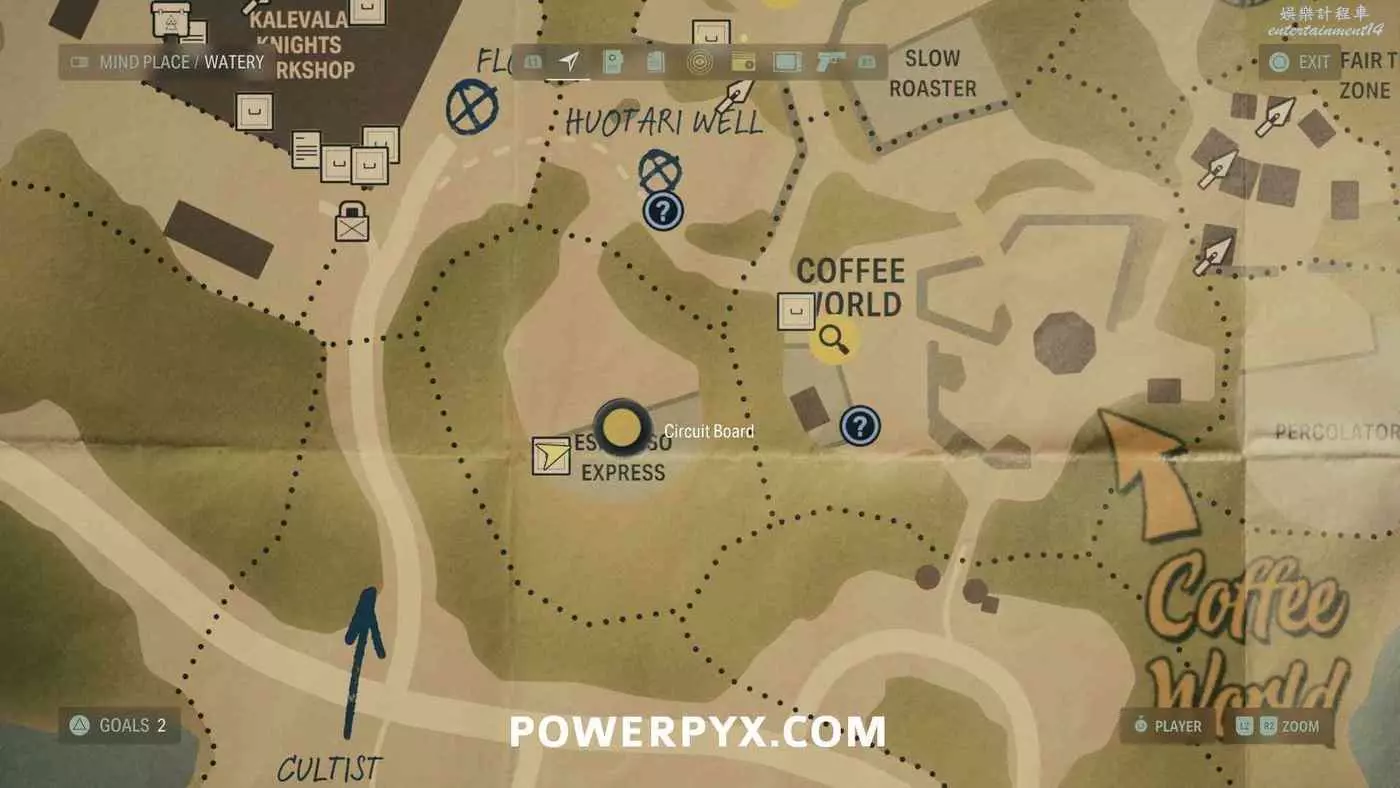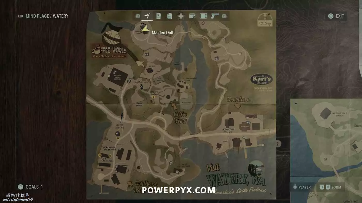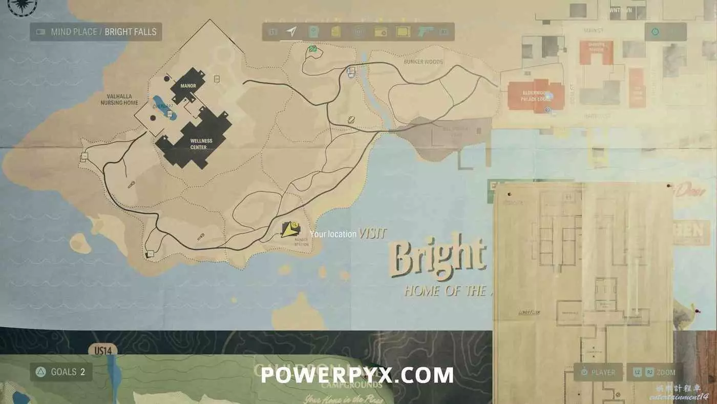 離開酒店後需要先穿過東南邊的洗車場才能到達詩人電影院,與售票處互動使用電影票開門,進入詩人電影院後,進入一層售貨亭後面一扇寫著【STAFF ONLY】的門,進入房間即可在牆上找到這張地圖。