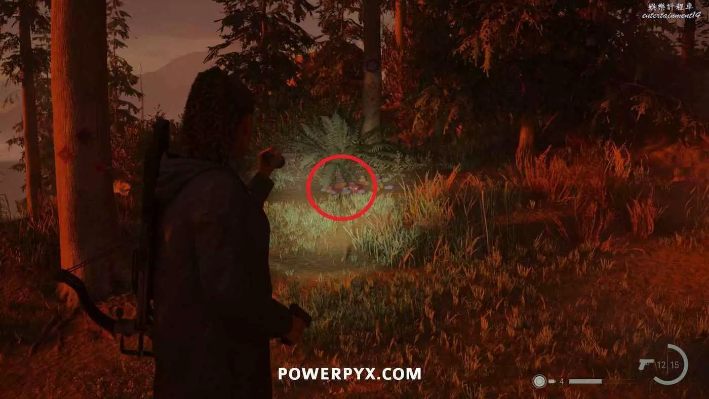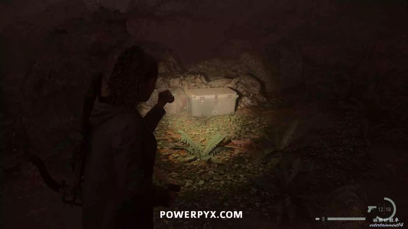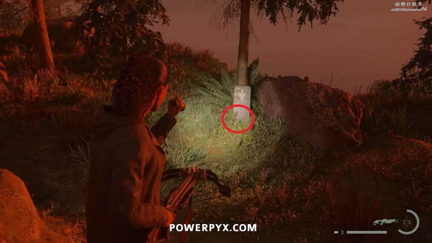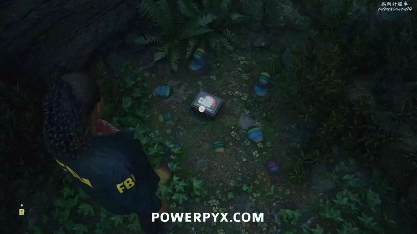 前往護林員站外面的煙囪,旁邊的地上可以找到鑰匙,拿到鑰匙後前往護林員站西邊山上即可打開藏匿物。