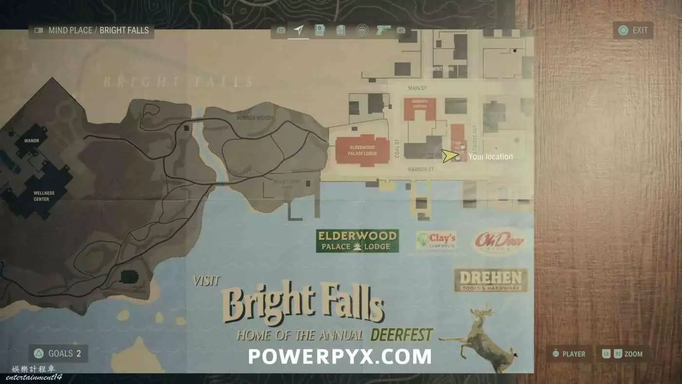 繼續跟隨劇情沿路往前走,到達老鹿餐廳,在餐廳外牆左側可以找到地圖。