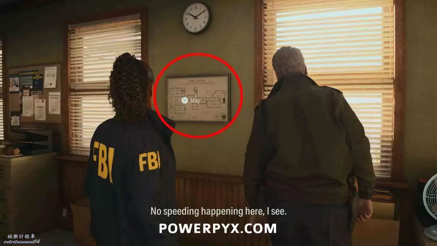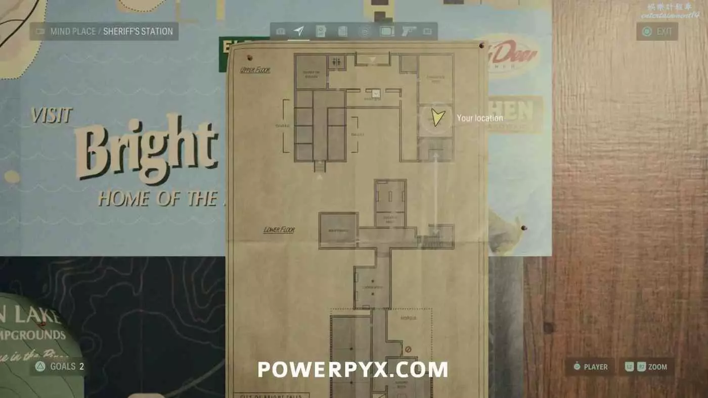 與餐廳裡的人交談後,跟隨凱西和警長前往警察局,進入警察局後可以在櫃台後面找到地圖。