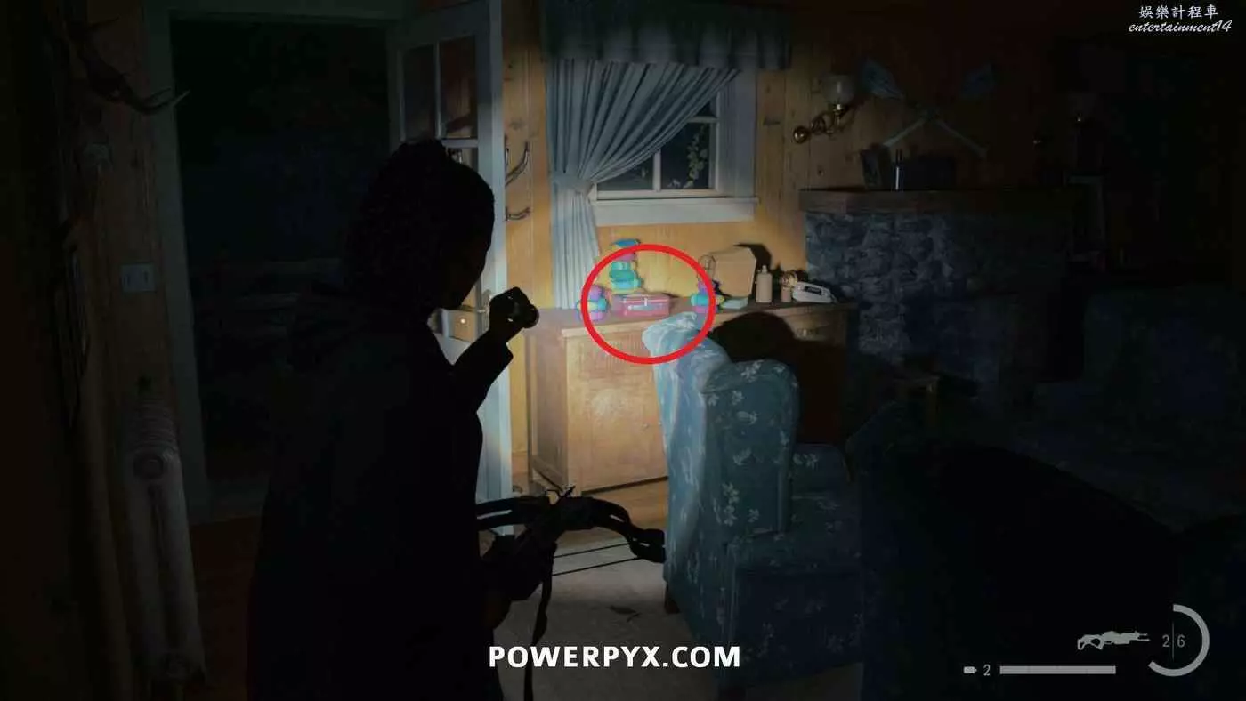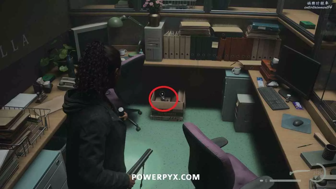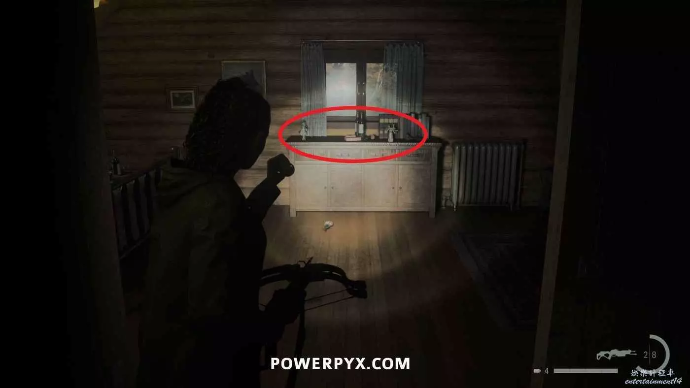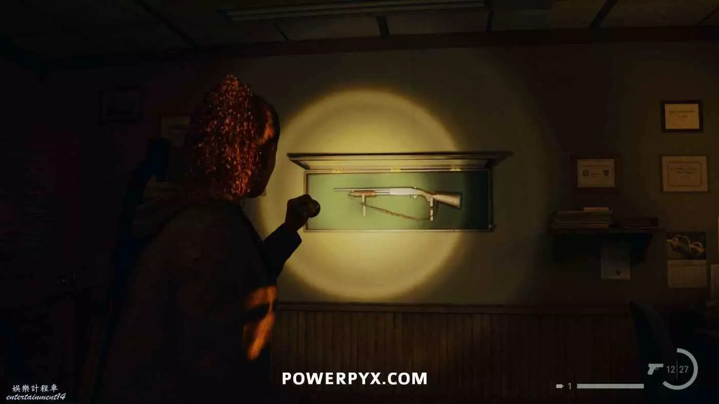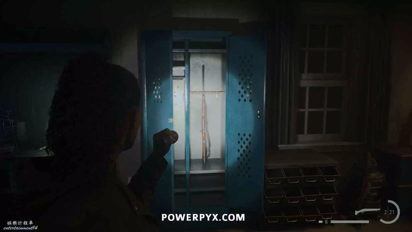 向前推進劇情直到到達屋頂酒吧,使用天使檯燈進入酒吧,再用一次天使檯燈即可拾取霰彈槍。在此前如果已經找到了所有武器,即可解鎖【武器收藏家(找到兩名角色的所有武器)】獎盃。