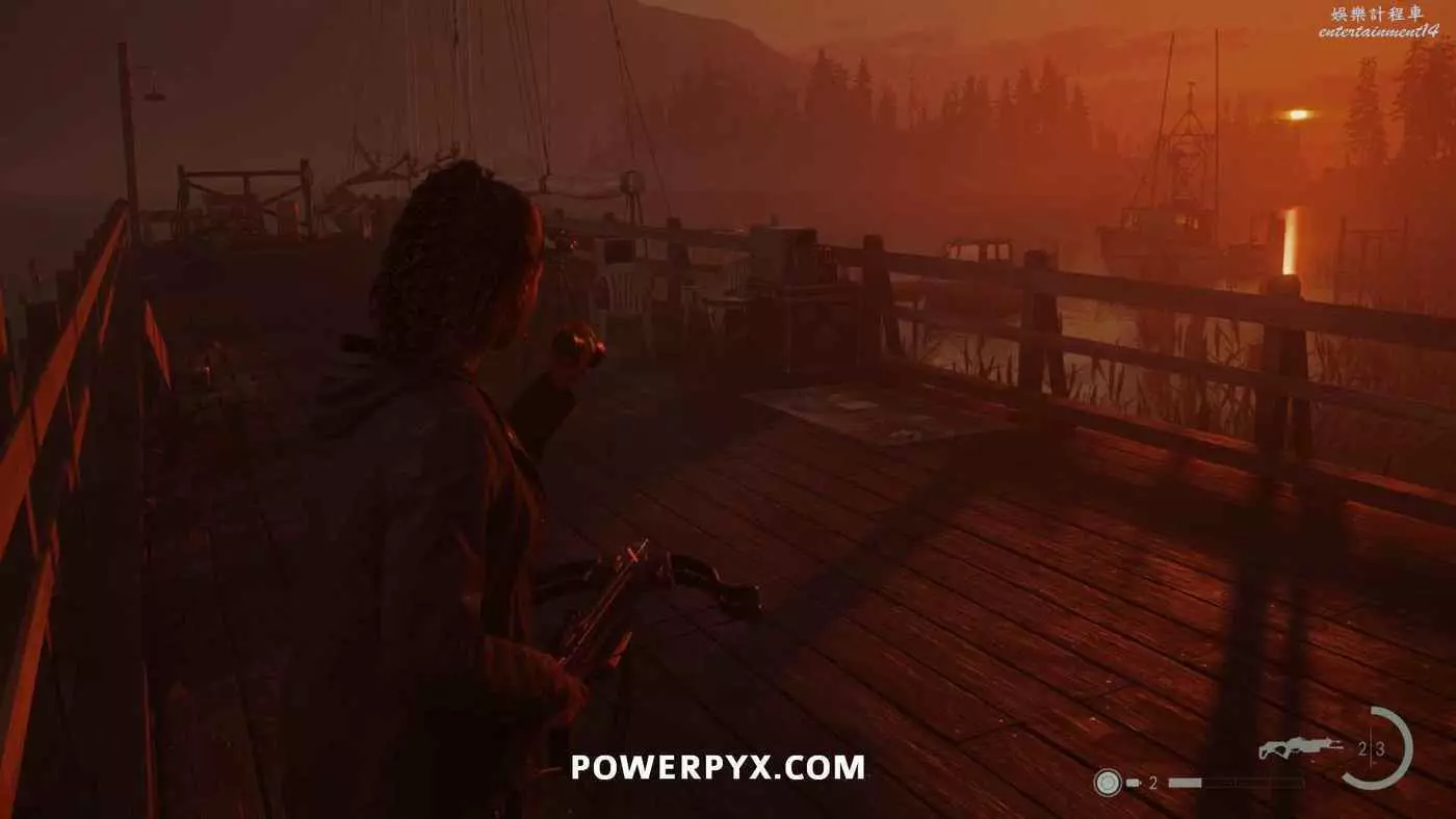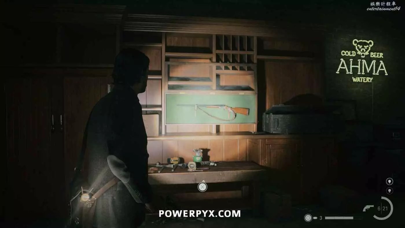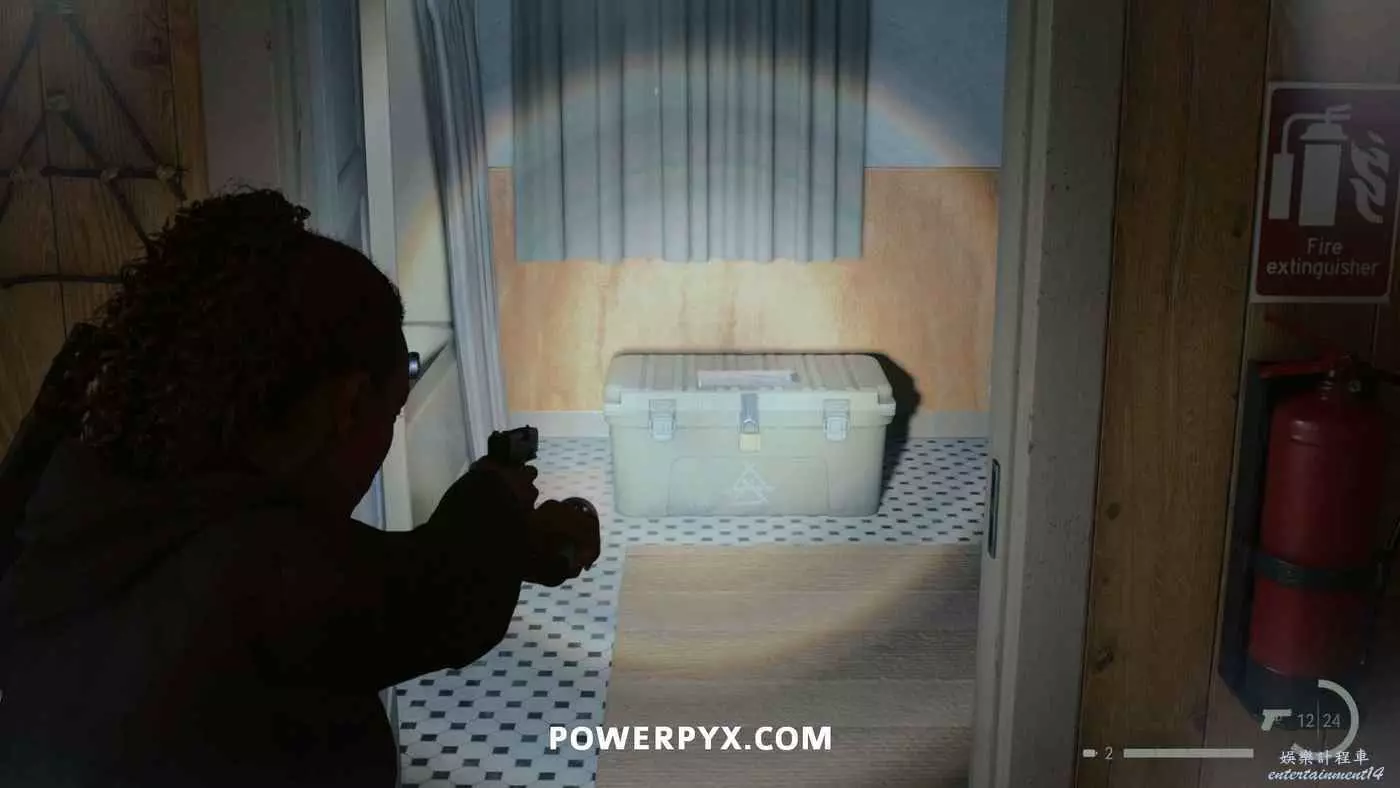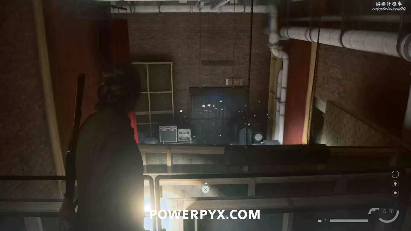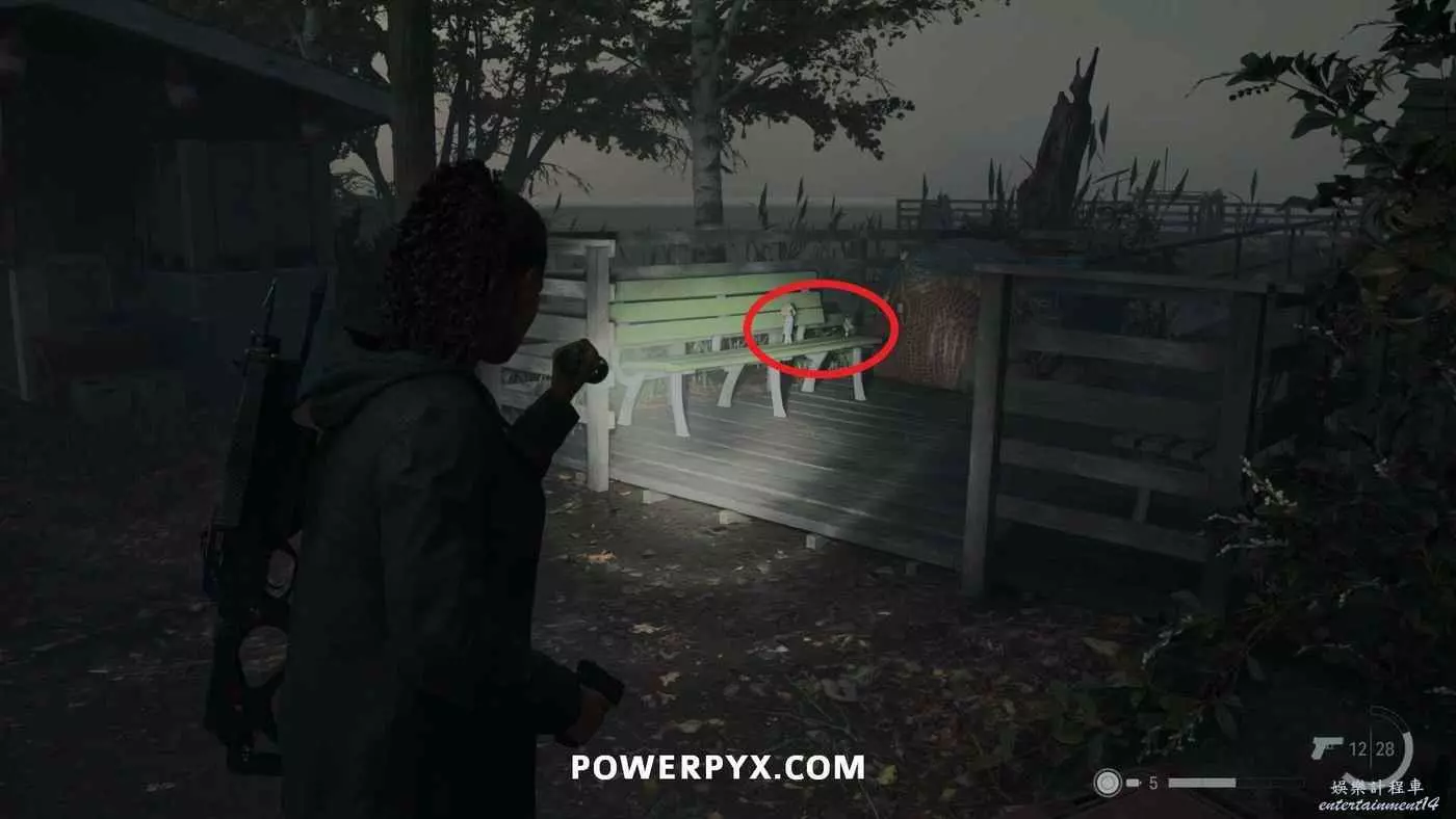 向前推進劇情直到到達屋頂酒吧,使用天使檯燈進入酒吧,再用一次天使檯燈即可拾取霰彈槍。在此前如果已經找到了所有武器,即可解鎖【武器收藏家(找到兩名角色的所有武器)】獎盃。