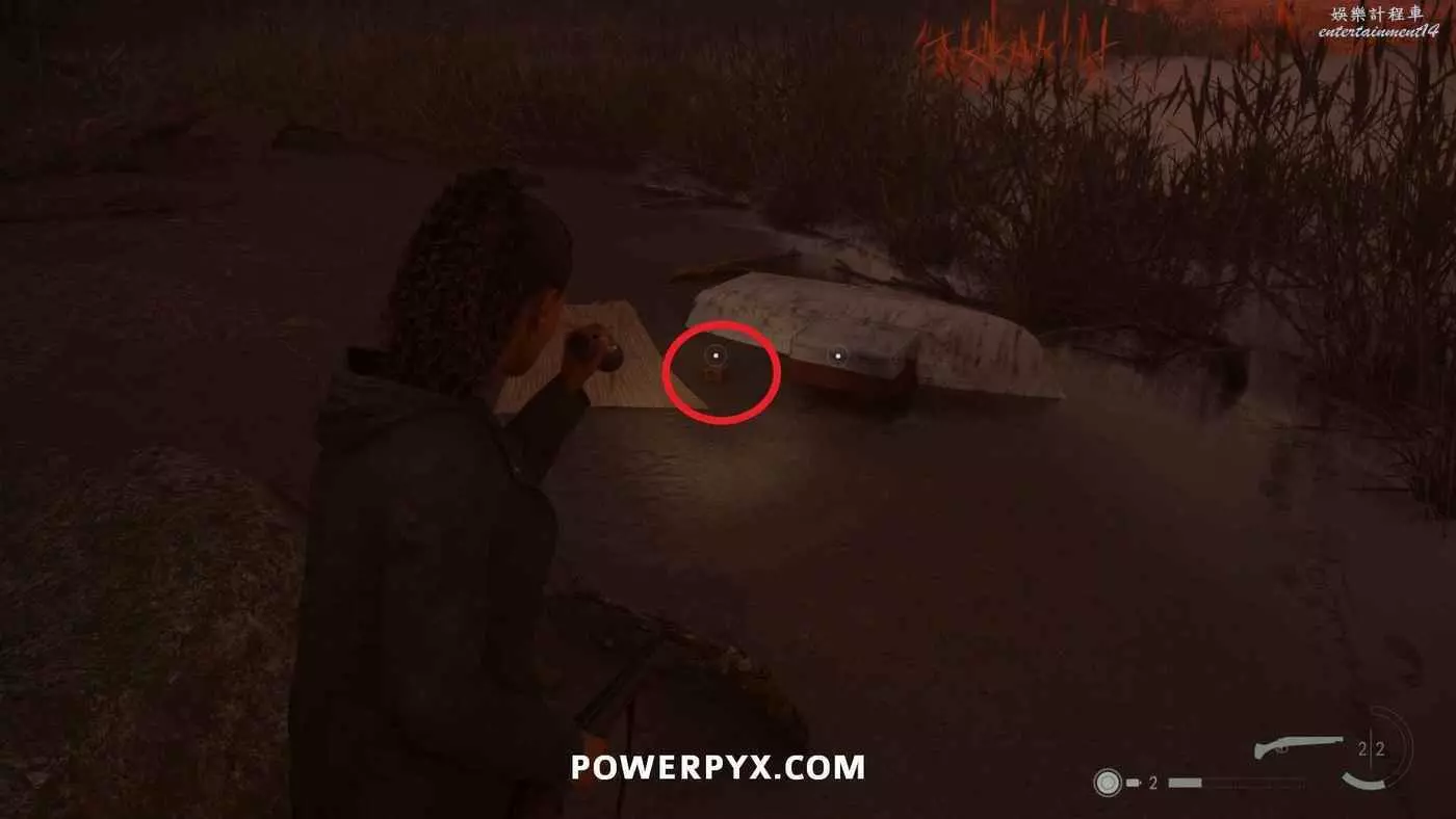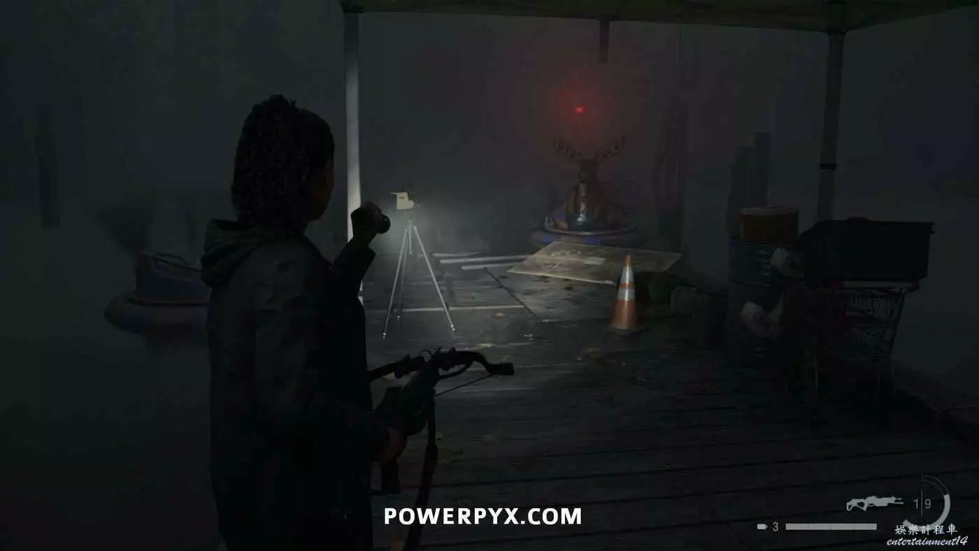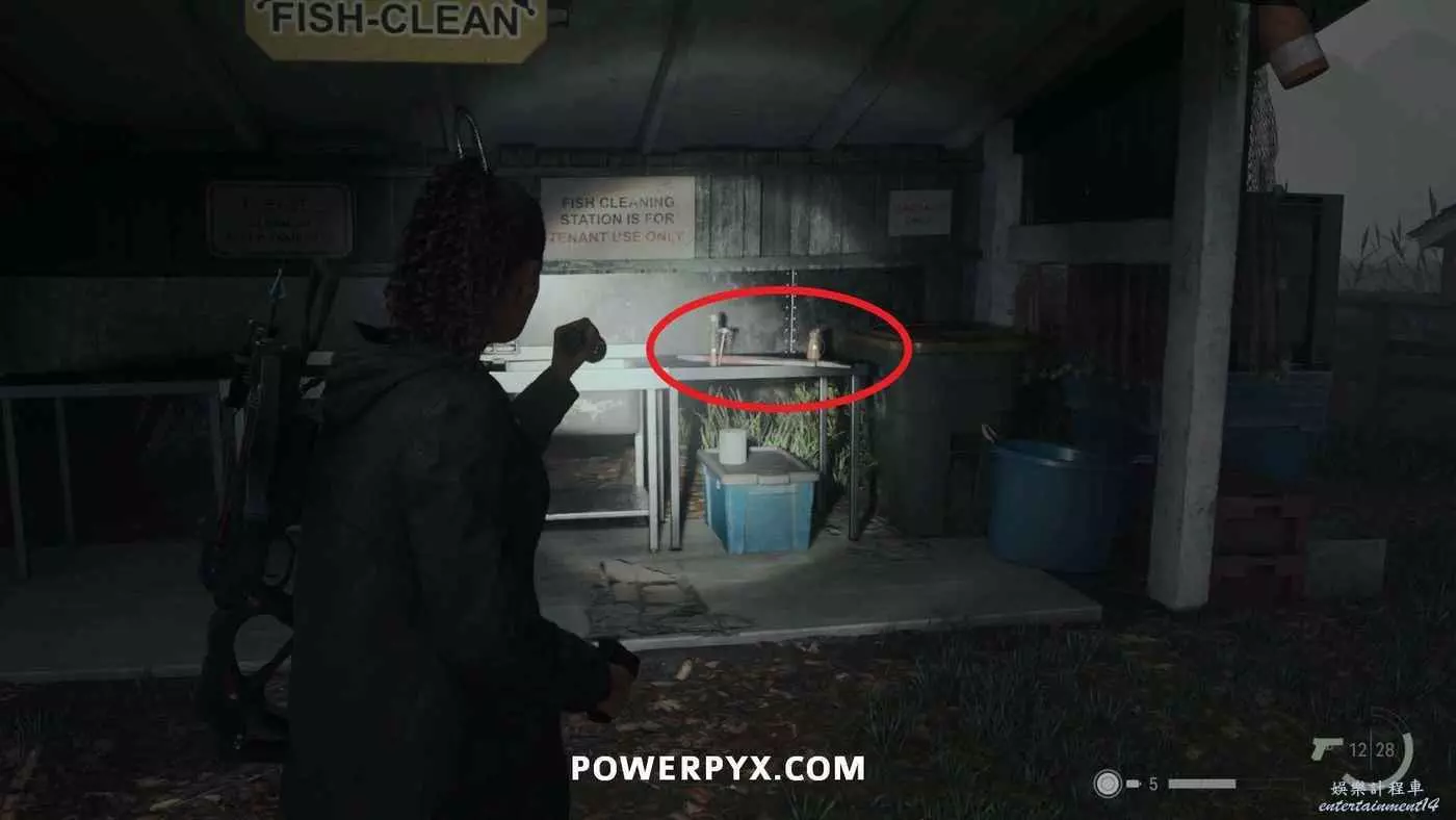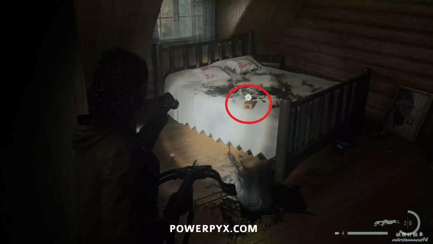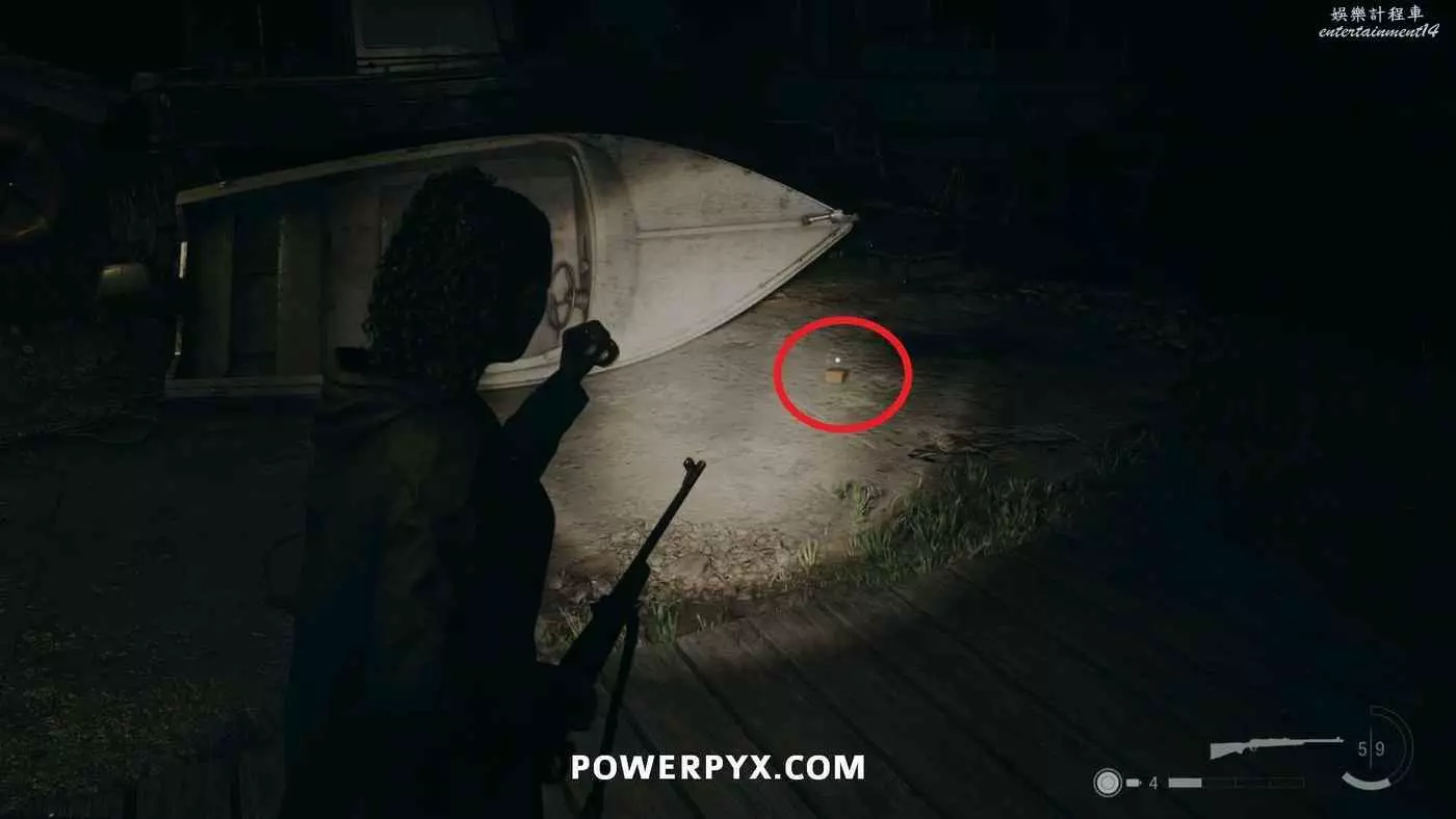 向前推進劇情直到到達屋頂酒吧,使用天使檯燈進入酒吧,再用一次天使檯燈即可拾取霰彈槍。在此前如果已經找到了所有武器,即可解鎖【武器收藏家(找到兩名角色的所有武器)】獎盃。