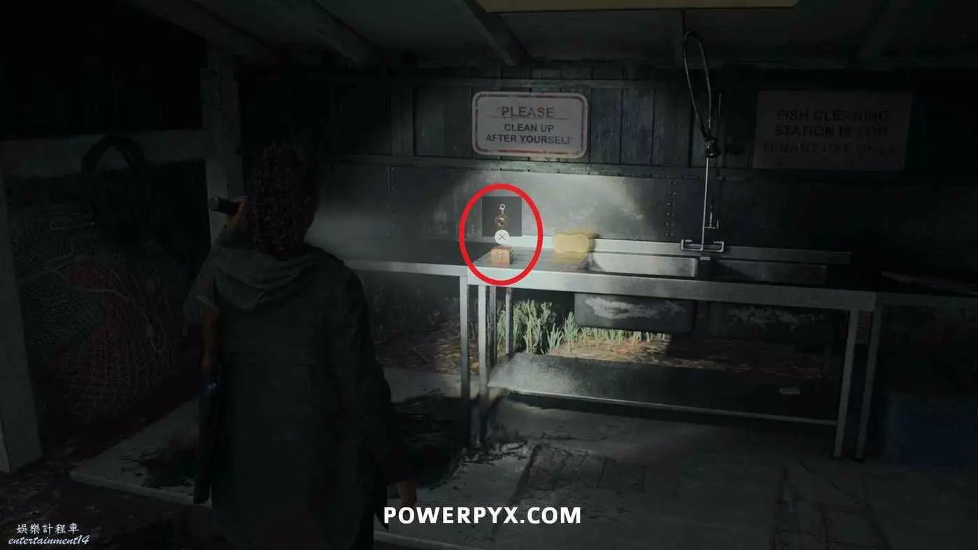 在警察局地下的證物室中,密碼是146。如果之前所有的藏匿物都已經找到的話,可以在這裡拿到富水鎮燈塔的鑰匙,前往燈塔可以獲得一些補給和原稿。