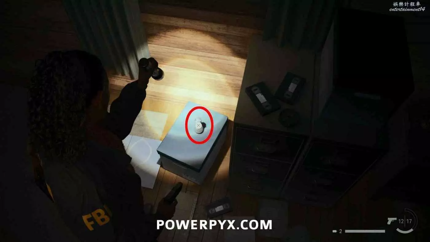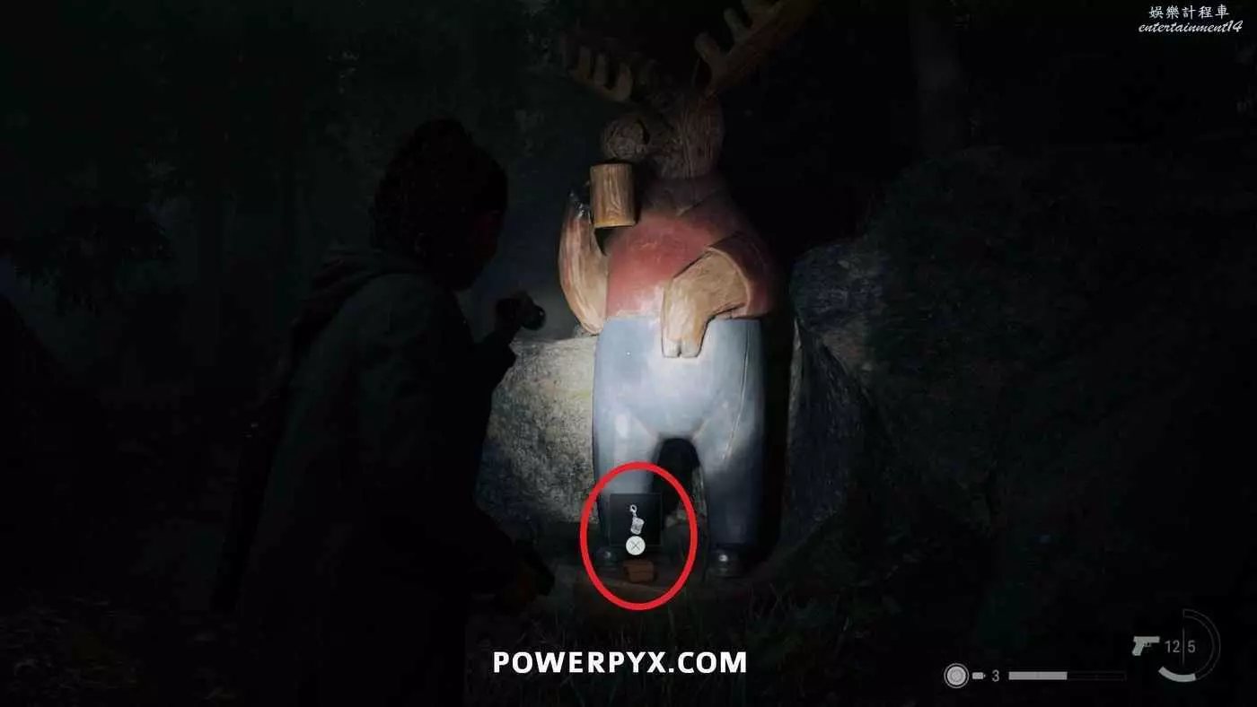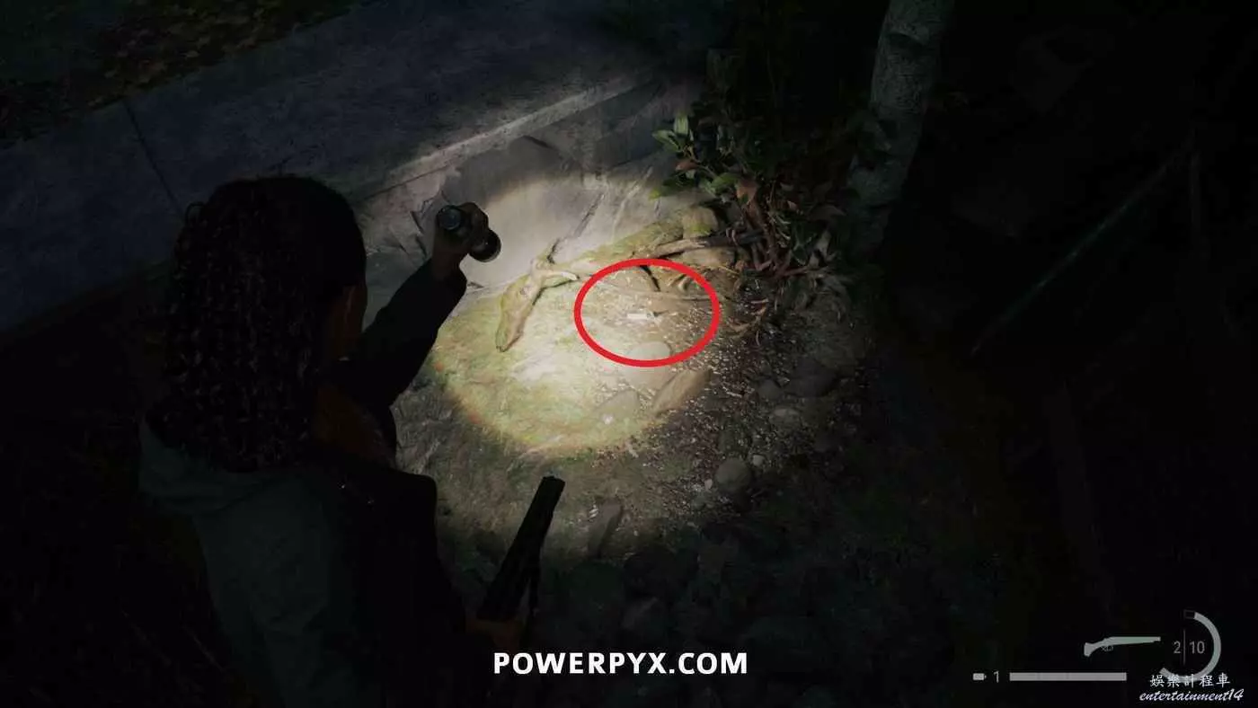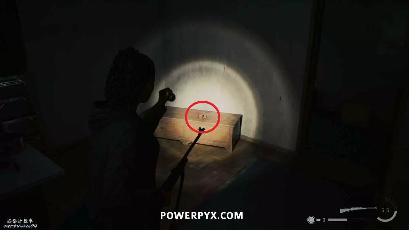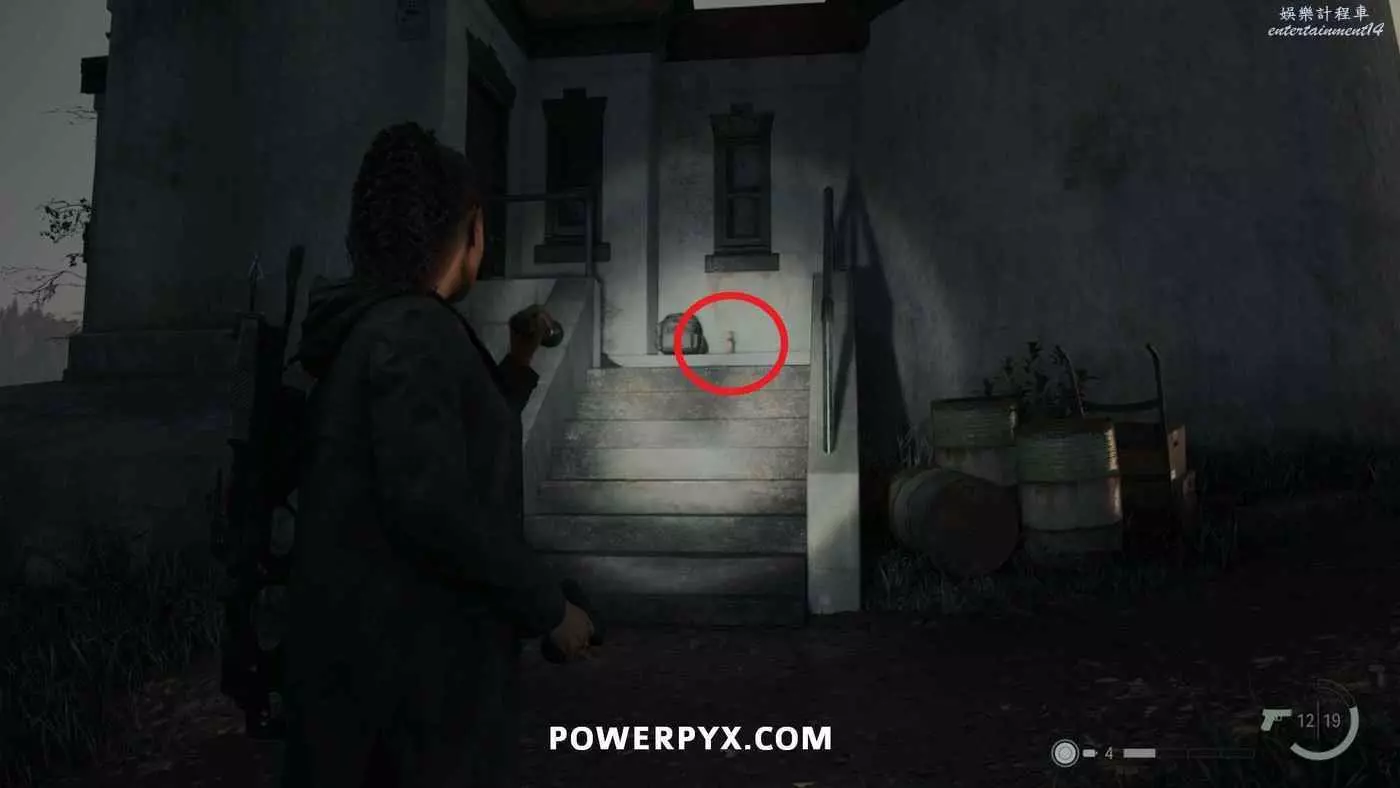 拿到手電筒和左輪後,按住×與同一區域的路燈互動帶走燈光,開啟新道路,沿路直走,在一扇門上方可以看到一個力量之言圖案,將手電筒對準圖案即可收集。本作中還有許多類似的力量之言,但與獎盃和成就相關的只需要找到1個,其他的都不用找。