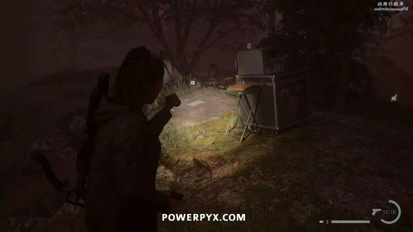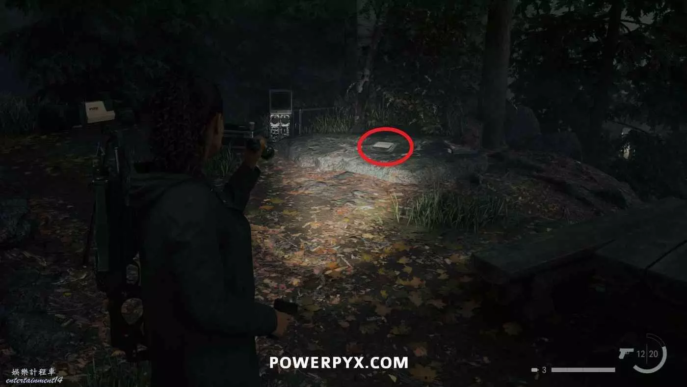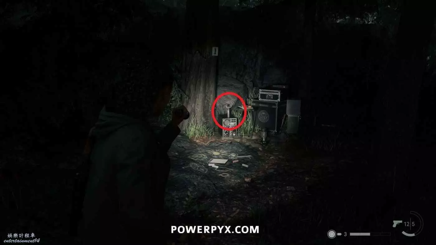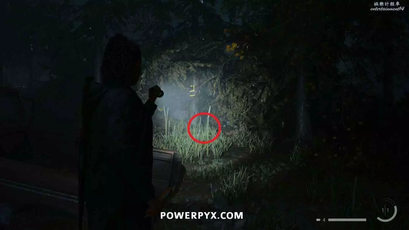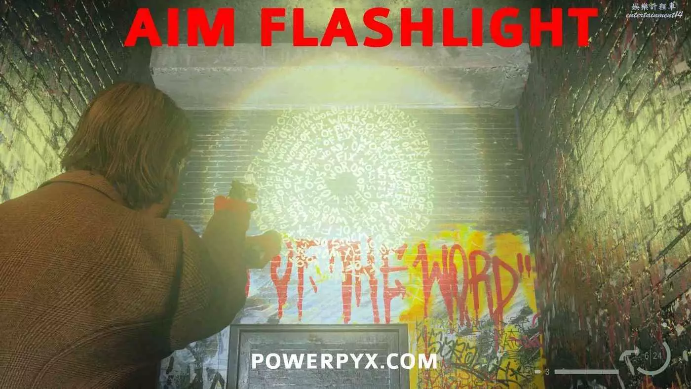 拿到手電筒和左輪後,按住×與同一區域的路燈互動帶走燈光,開啟新道路,沿路直走,在一扇門上方可以看到一個力量之言圖案,將手電筒對準圖案即可收集。本作中還有許多類似的力量之言,但與獎盃和成就相關的只需要找到1個,其他的都不用找。