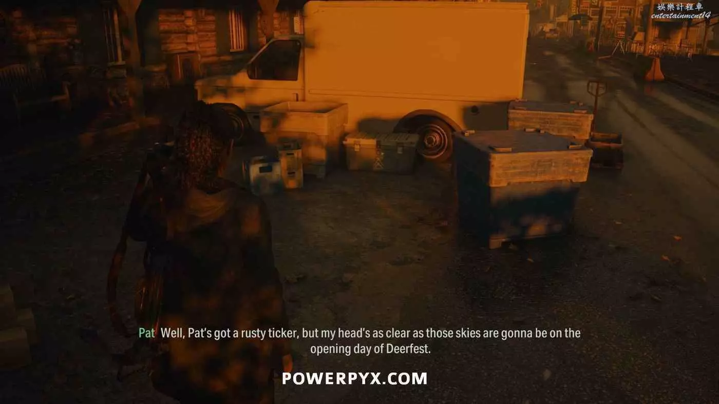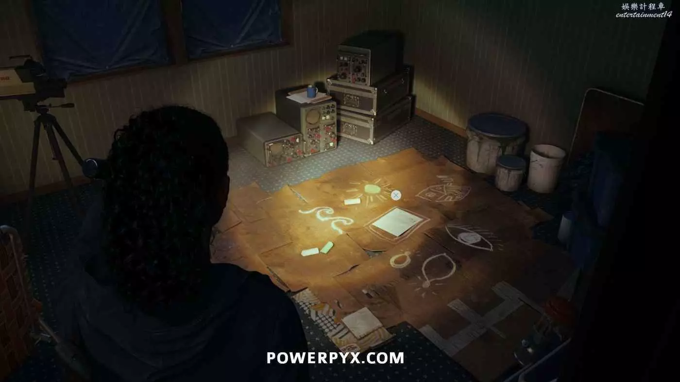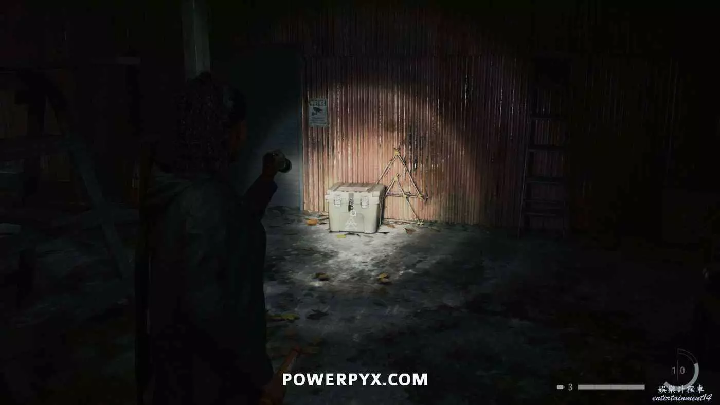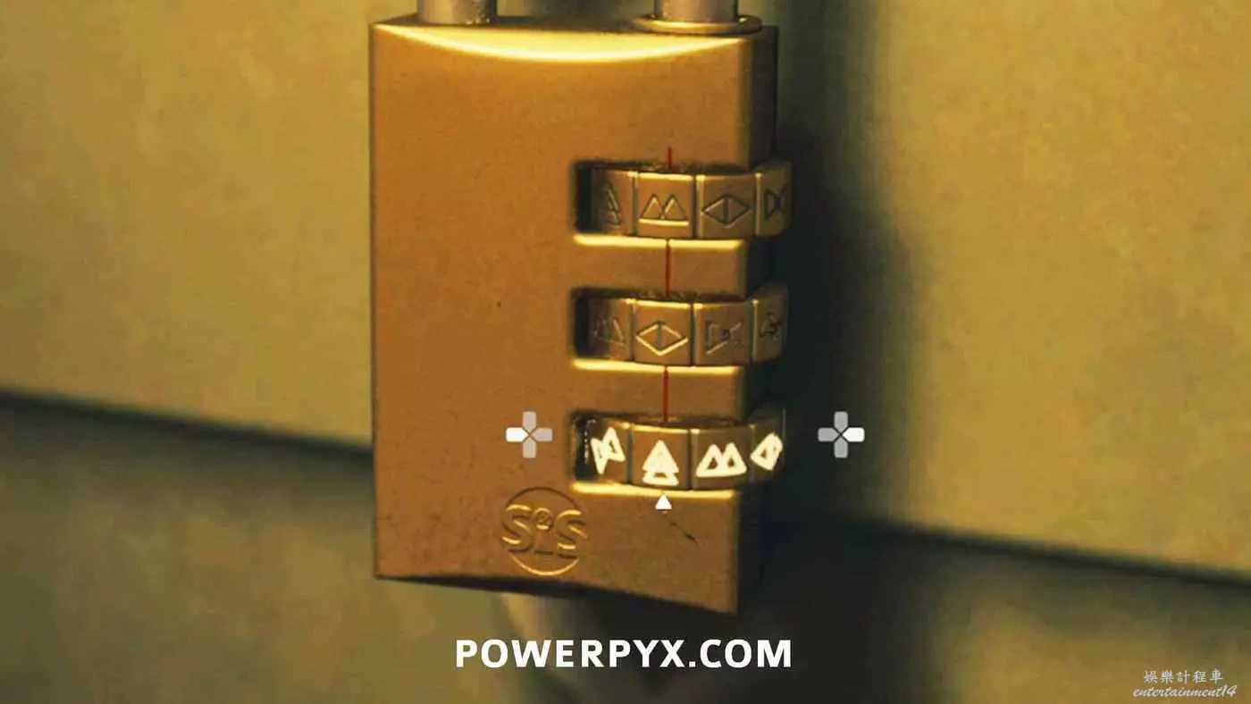 上鎖箱子上的注釋必須與輸入的圖示順序相對應,符號可以在拖車內側找到,但本作不用找到線索直接輸入密碼也可以進行解謎,因此可以跳過尋找線索的步驟。