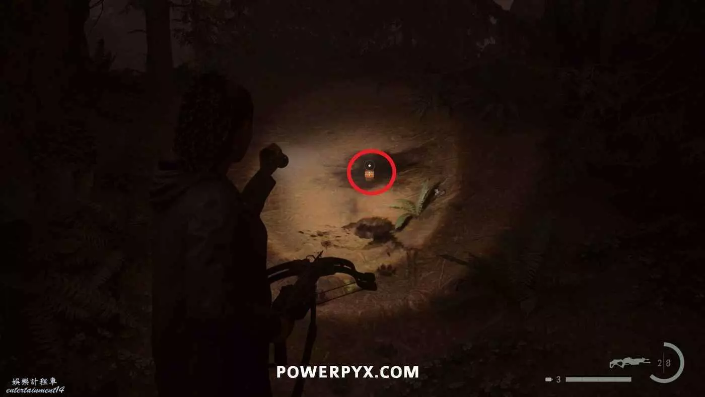 藏匿物的位置也在同一區域,就在營地北邊相隔幾米的地方(地圖上營地圖示左側),用鑰匙開啟即可。