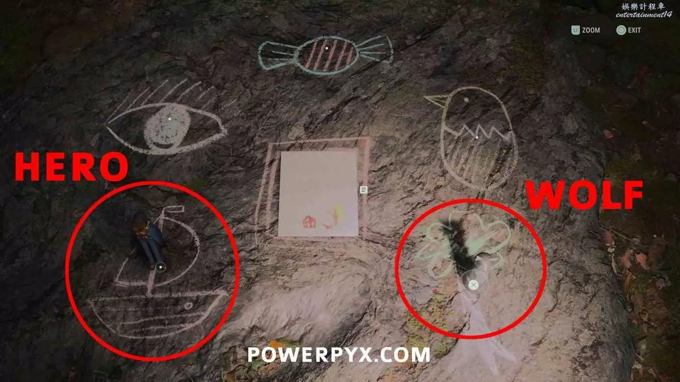 前往私人小屋找到一個童謠謎題。烏鴉玩偶放在雛鳥上,英雄玩偶放在心臟上,狼玩偶放在房子上。解開謎題後拾取玩偶。