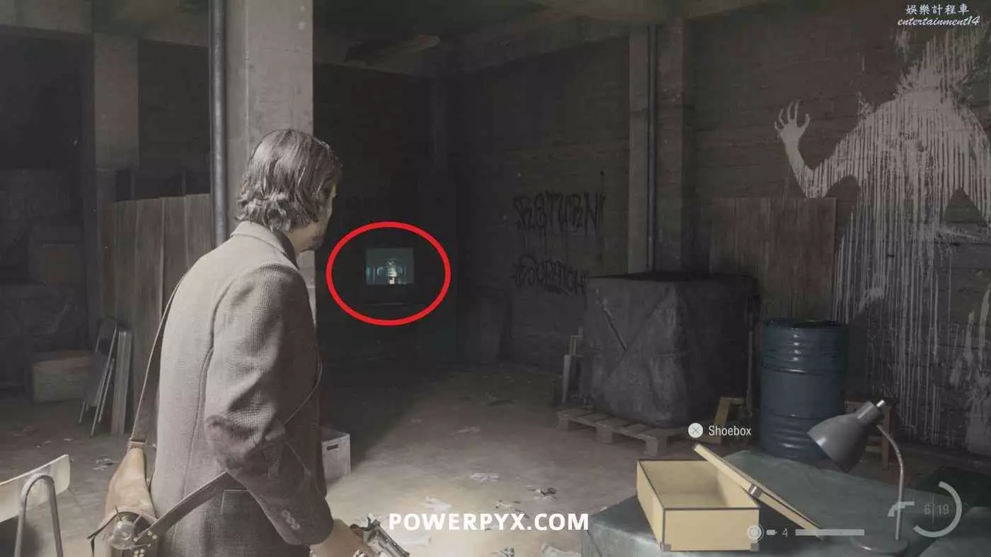 使用情節元素【大師】進入螢幕上的門,到達一片隱藏區域,此區域會迴圈出現,一直沿路走,開始進行第三次迴圈時,存放膠片的房間裡會出現一扇門,打開才能繼續前進,一定要進門並靠近電視觸發此視頻,一定要確保在離開此房間之前觸發此視頻,否則就會錯過。