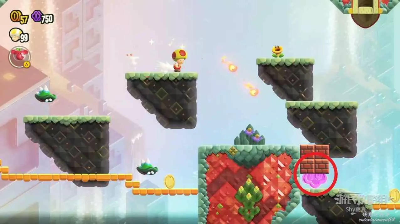 通過中間旗後,利用煙花可以把驚奇花下面的磚塊打開進入驚奇世界。