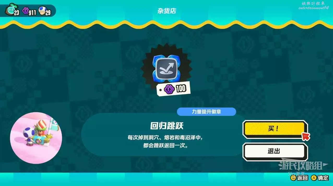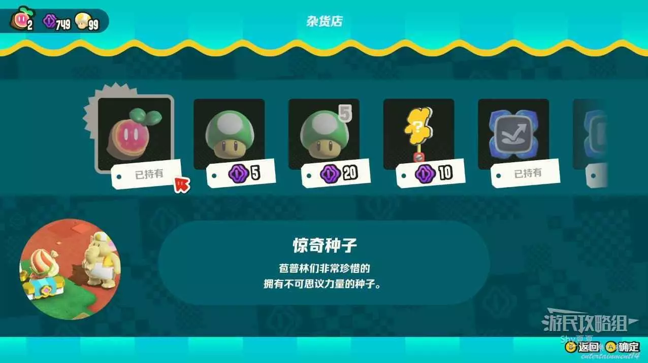 這一關有兩個雜貨店,在入口處的雜貨店可以購買【徽章-二連跳】和一個【驚奇種子】。