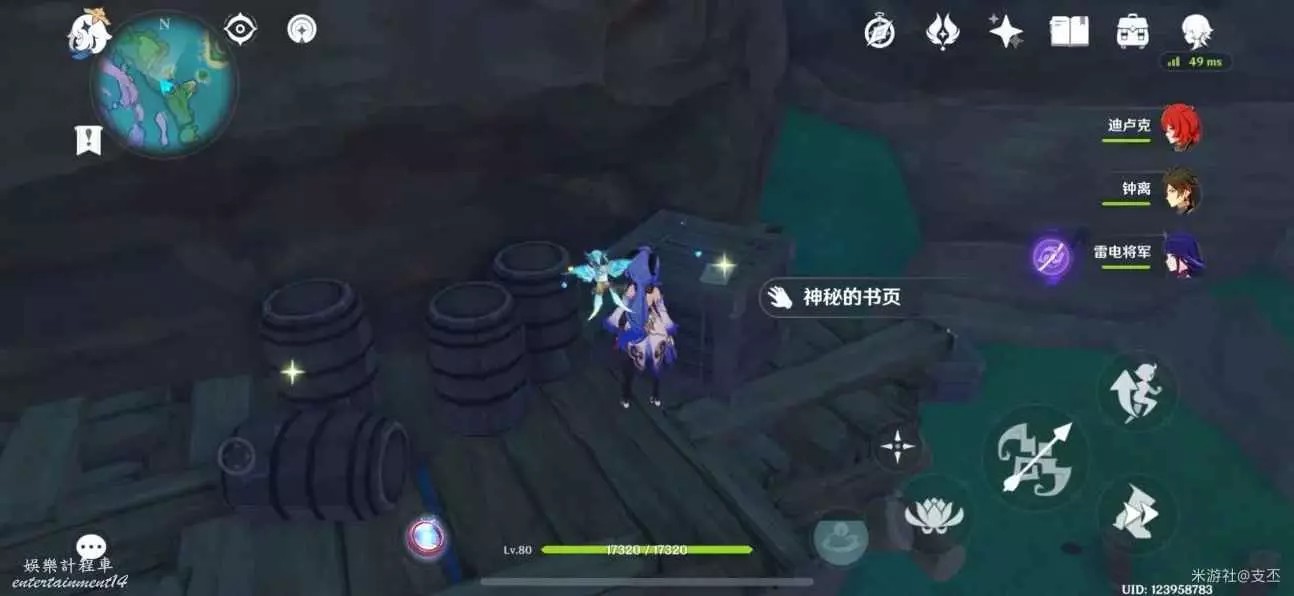 從上面的瀑布飛下來,看見盜寶團營地,殘頁在木箱上