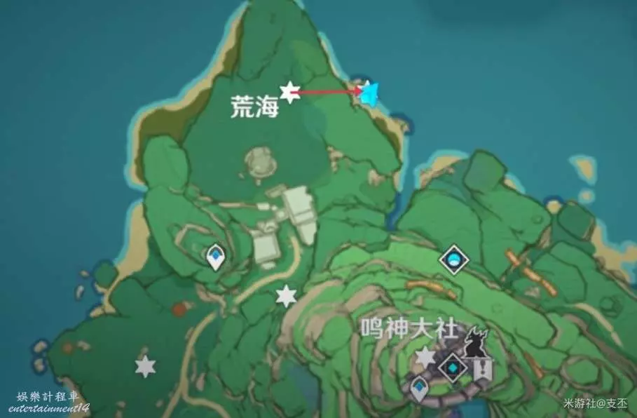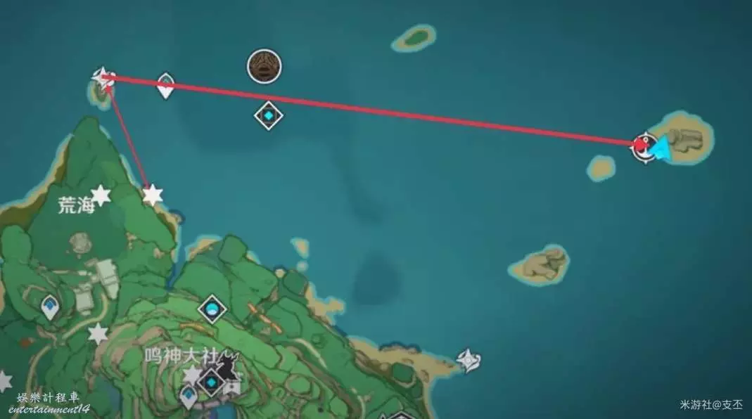 上一處殘頁往西北方向過來,來到浪船錨點,開船往東邊,來到小島