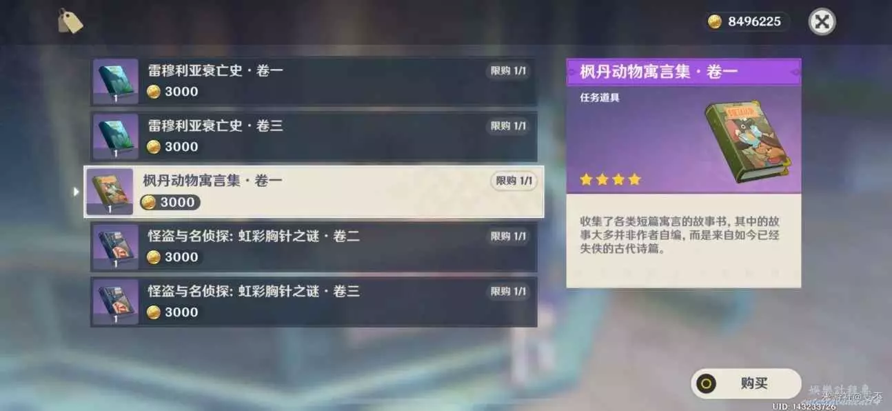 集齊三卷《楓丹動物寓言集》,即可獲得成就——欺詐師列那