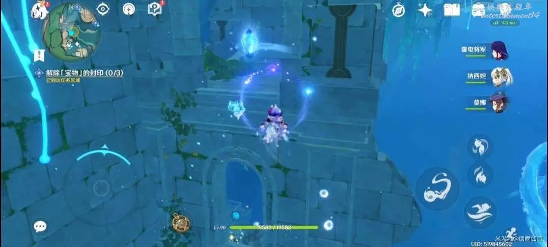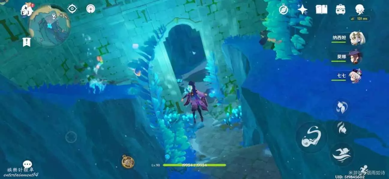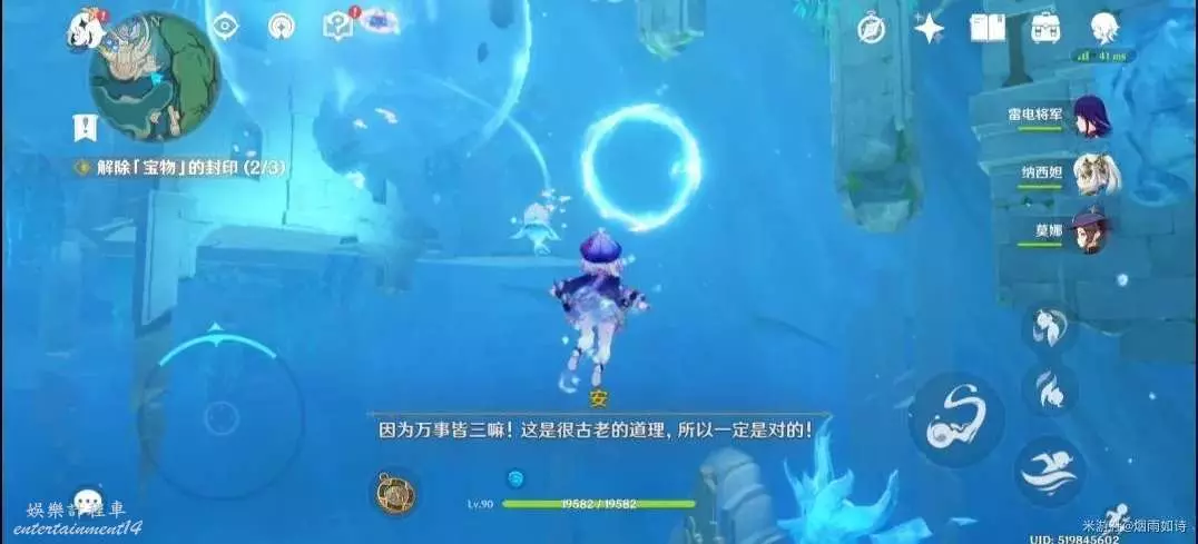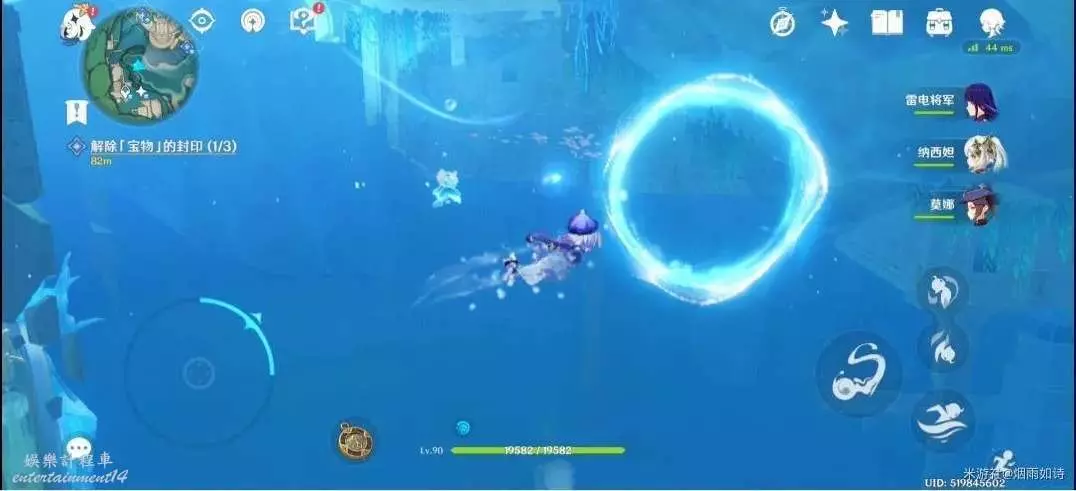 我們先走了傳送到希望之路的水下傳送錨點,往地圖西北方向遊,來到任務地點找到安對話,然後往西北方向前往遺跡