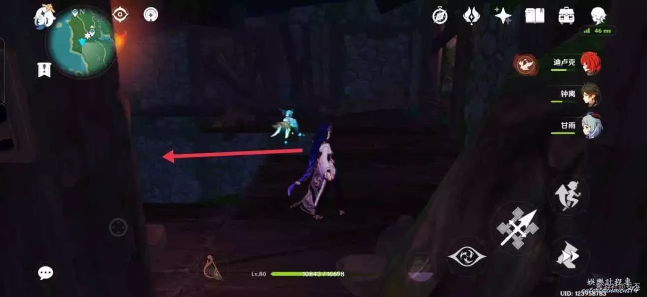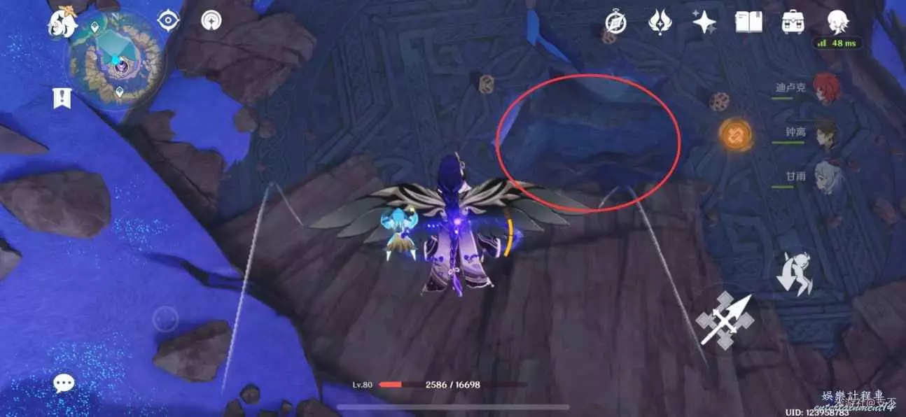 傳送點往西南方向飛下來,進入山洞