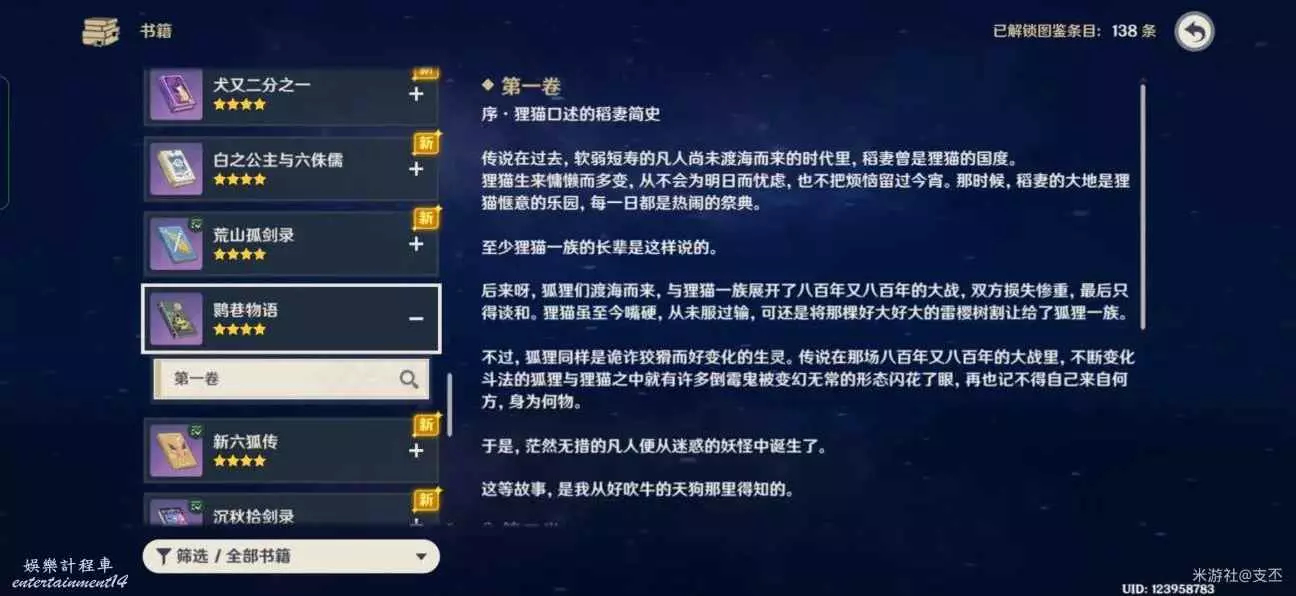 十處殘頁集齊後,在背包裡合成《鹮巷物語·序》,可以書籍查詢鹮巷物語第一卷