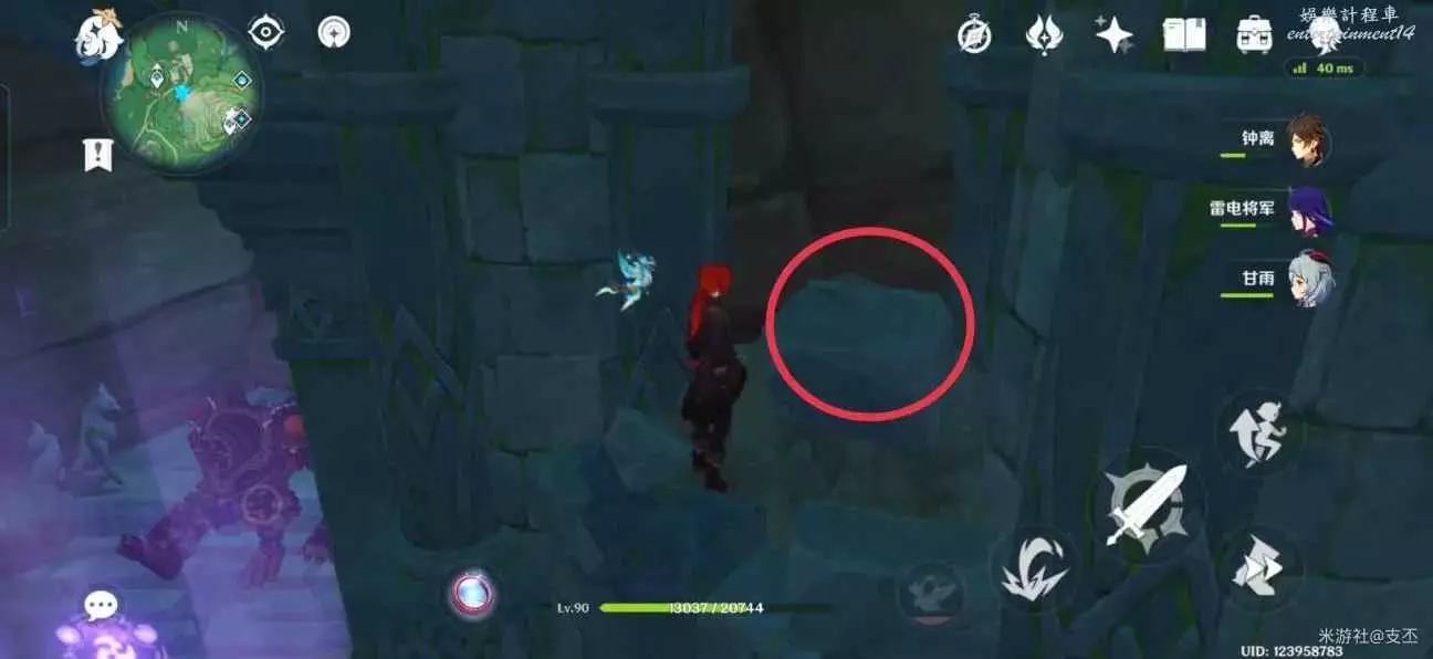殘頁在神龕石塊處,神龕處有三隻飄浮靈