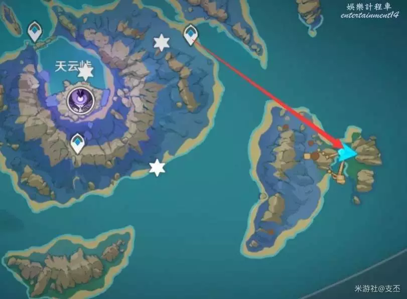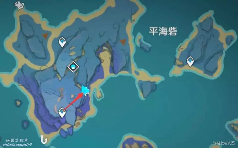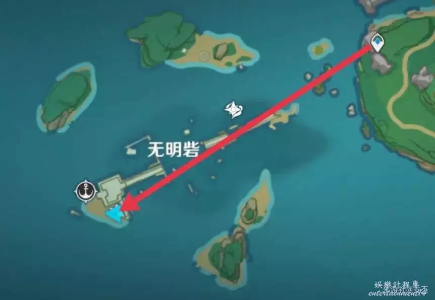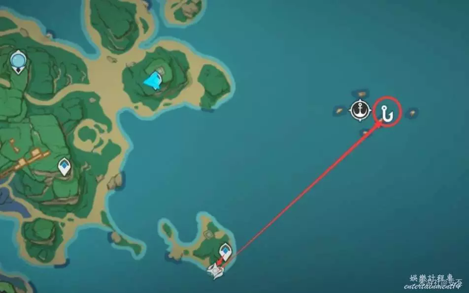 上一處殘頁往西北方向過來,來到浪船錨點,開船往東邊,來到小島